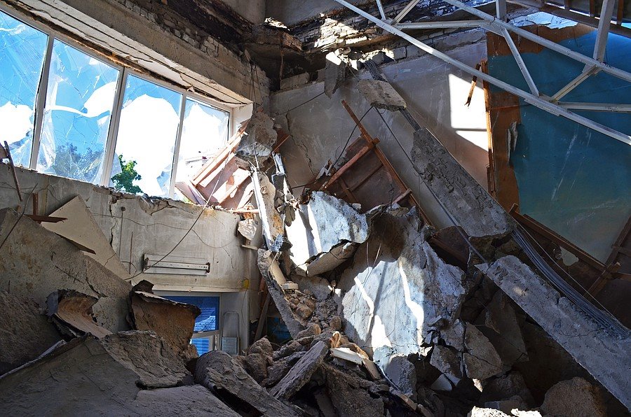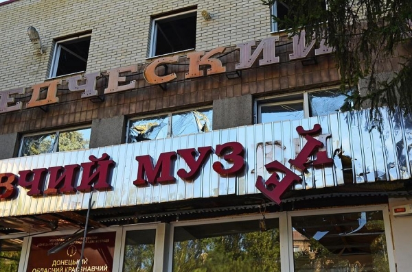 В Донецке полностью снарядами был разрушен краеведческий музей. Полностью развалилась стена, от удара просели плиты перекрытия, также не осталось целых стекл в данном здании. По словам сотрудников музея, взрывом уничтожило с тысячу экспонатов. Сейчас предпринимаются попытки восстановления остальных, но их них многие до сих пор под завалами. Достать их оттуда вряд ли получится. Восстановлению музей уже не подлежит.