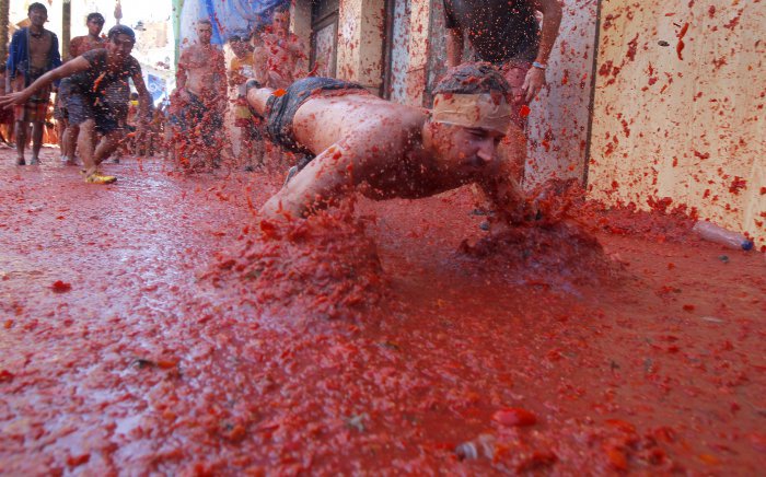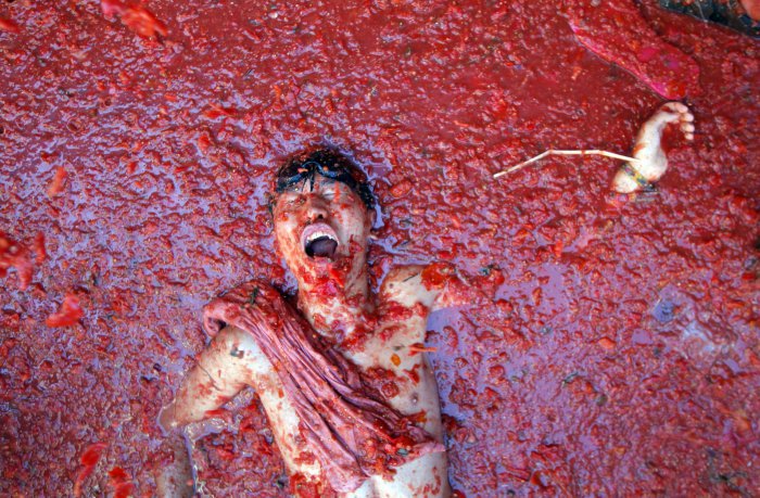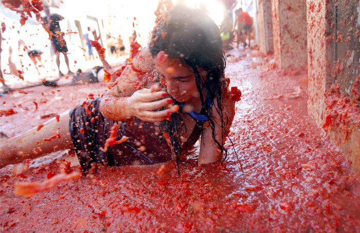 Городок Буньоль, что в Испании, недавно потрясла битва. Сок от помидоров и сами овощи покрыли тут все, что было только можно, да и что нельзя, тоже покрыли…