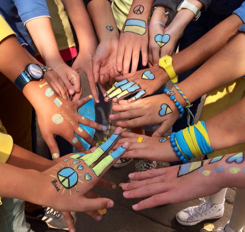 Московские дети неожиданно оказались намного смелее своих родителей. Ребята пришли в свою школу на уроки, нарядившись желтый и голубой цвета.