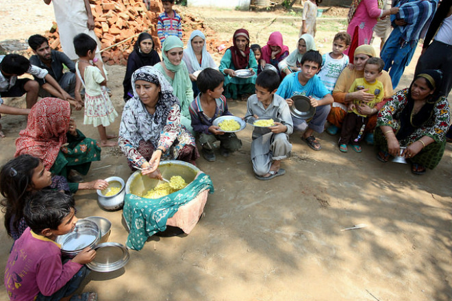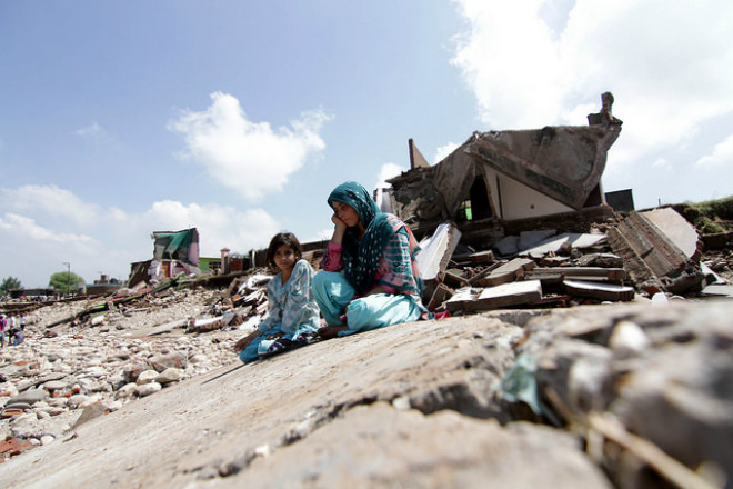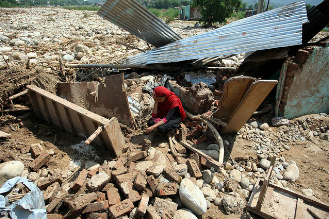 На фотографиях видно разрушенные дома, которые повредила вода в городе Сринагар одиннадцатого сентября. Для выживших остается самой большой проблемой поиск еды и чистой воды для питья. Пострадавшим, прежде всего, детям, помогают добровольцы и волонтеры, которые раздают еду прямо на улицах.