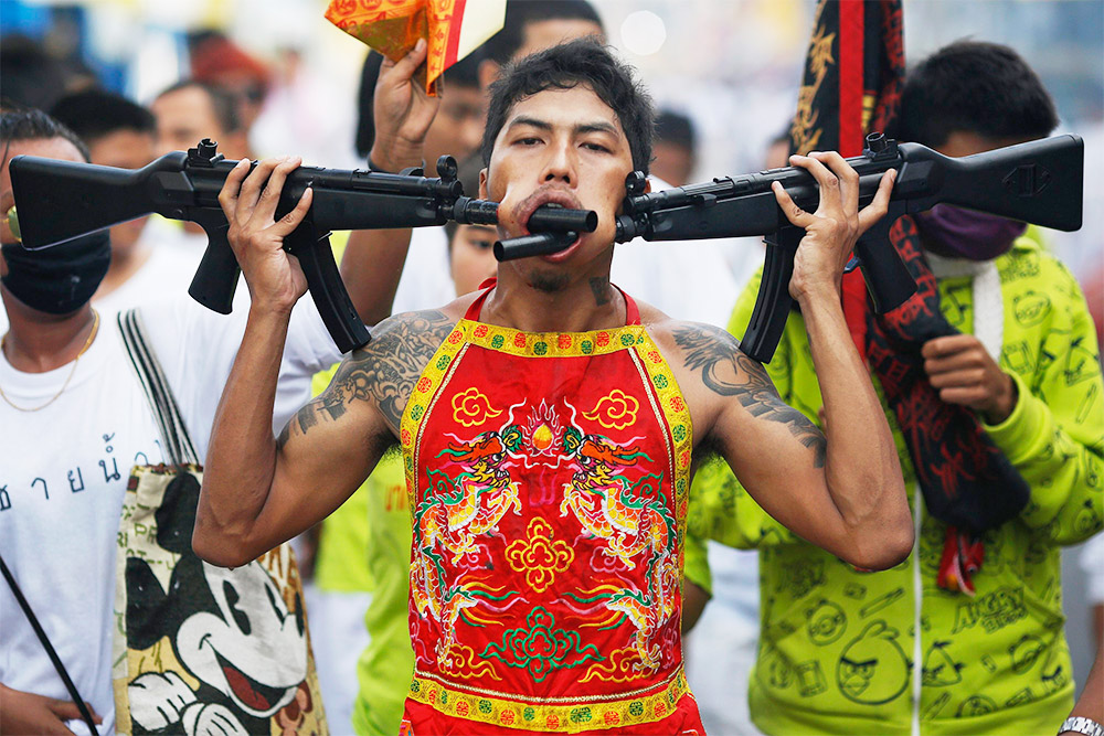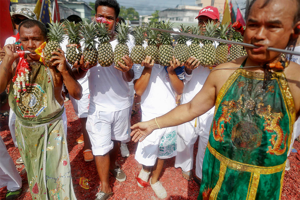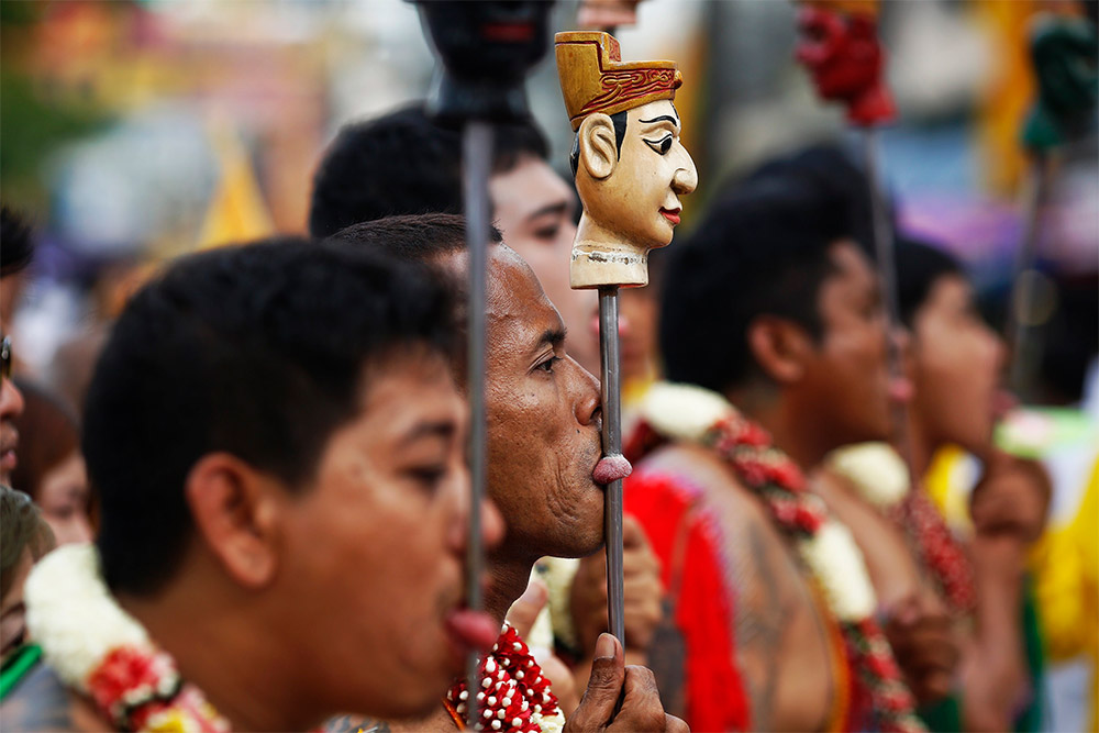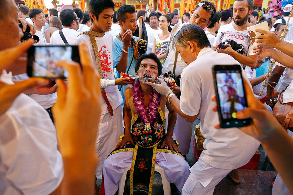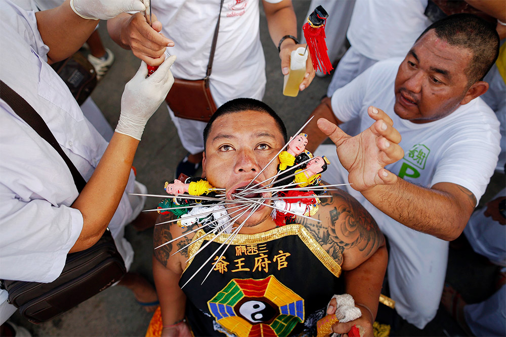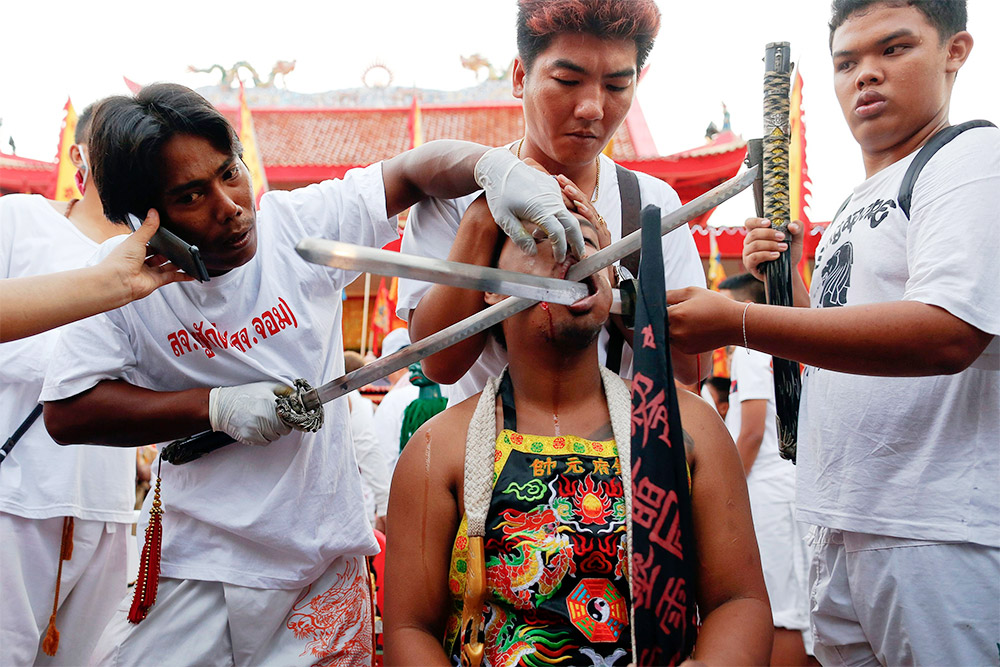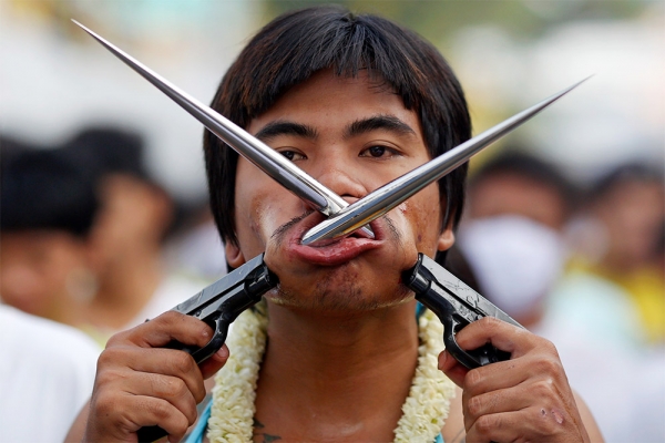 Эта фотоновость не для слабонервных. На одном из тайских островов голодные китайцы наносят себе жестокие увечья. Они прокалывают себе щеки и губы копьями, спицами и ножницами. Это не азиатский фильм ужасов, это кадры с Вегетарианского фестиваля, ставшего уже традиционным в Таиланде. Впечатляющее действие, в транс вгоняет и зрителей и участников. Сложно сказать, удается ли у тайско-китайских веганов достичь искомого душевного равновесия, а также, чем помогают зверушкам все эти новые дырки в телах бедных участников фестиваля, однако однозначно можно увериться в том, что этот мир невероятно разнообразен и удивителен.