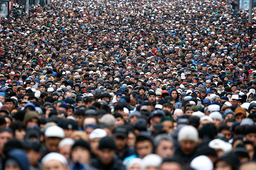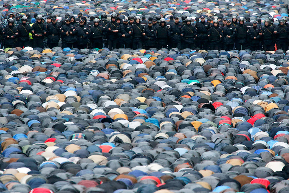 Москва сегодня шокирует количеством собравшихся массово на один из главнейших и зрелищных религиозных праздников – Курбан-байрам.
