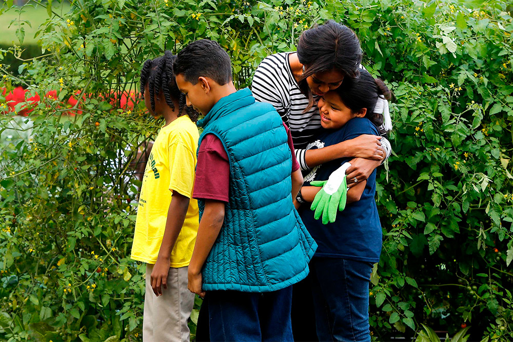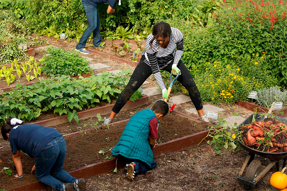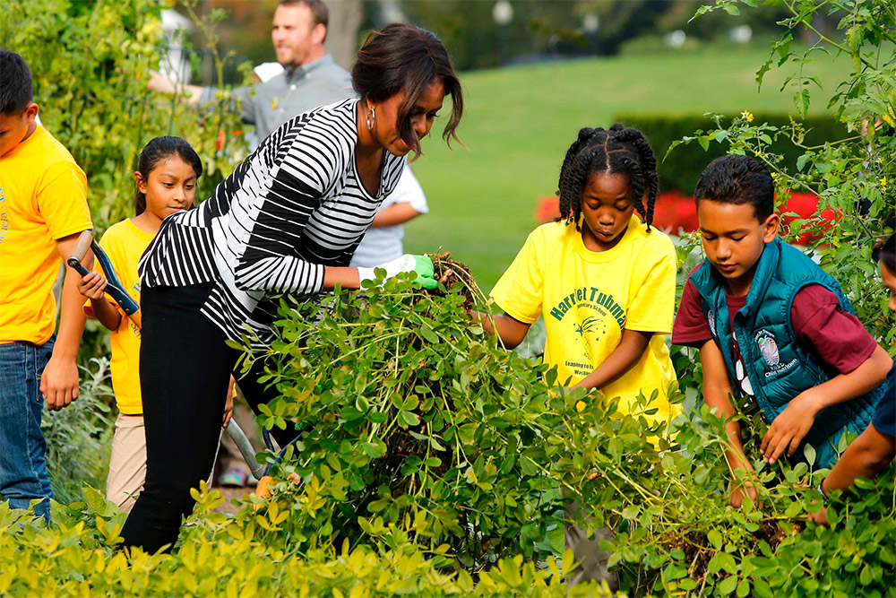Оказалось, возле Белого дома есть участок, а на нем высажены овощи. И супруга американского президента в свободные часы с удовольствием занимается разведением овощей, и даже написала целую книгу об этом. Каждый год, Мишель Обама готовит из выращенных овощей салат для детей, и, раскладывая его по тарелкам, рассказывает телезрителям, к чему может привести детское ожирение. Известно, что эта проблема в Америке наблюдается у каждого шестого школьника, и вести с ней борьбу непросто.