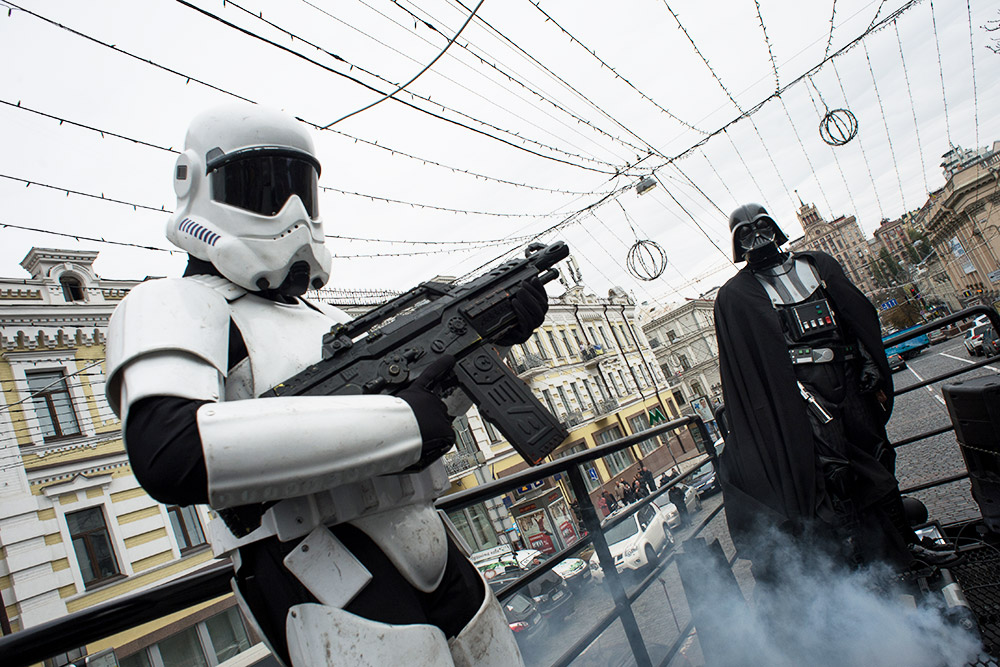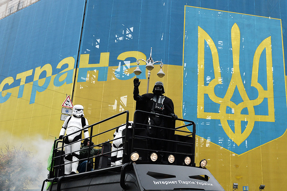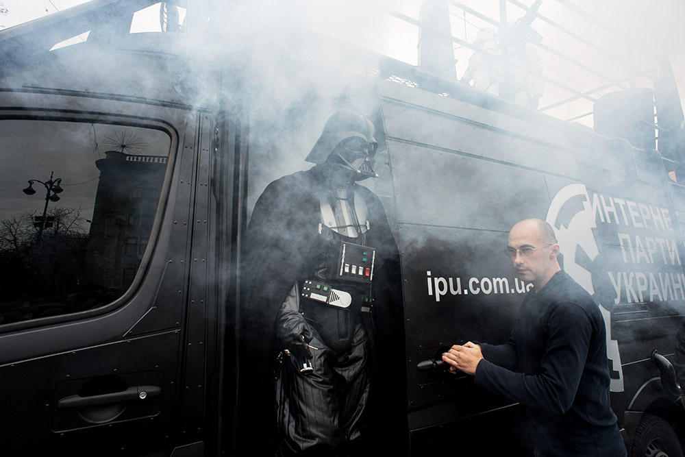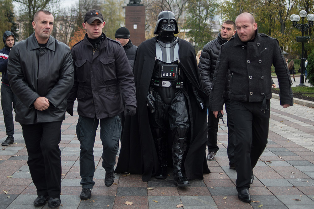 В столице Украины агитировал за себя и свою партию Дарт Вейдер. Отметим, что мероприятие прошло под бдительной охраной так называемого отряда «имперских штурмовиков».