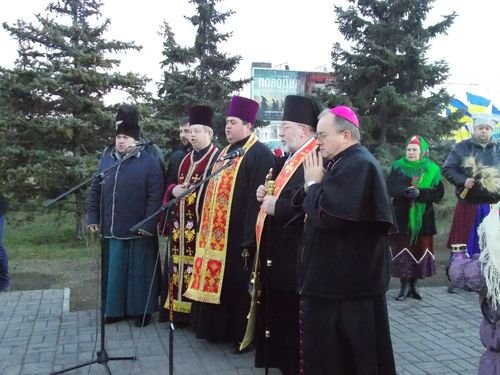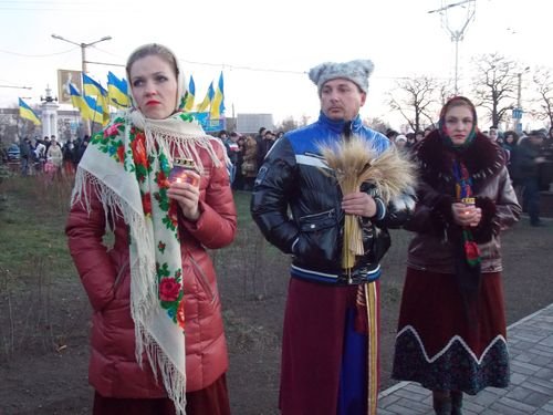 Сотни запорожцев сегодня собрались у монумента жертвам Голодомора. Они пришли помолиться о тех наших соотечественниках, которые погибли от геноцида. Люди несли украинскую символику, которая была перевязана черными ленточками, зажженные свечки, колоски и лампадки.