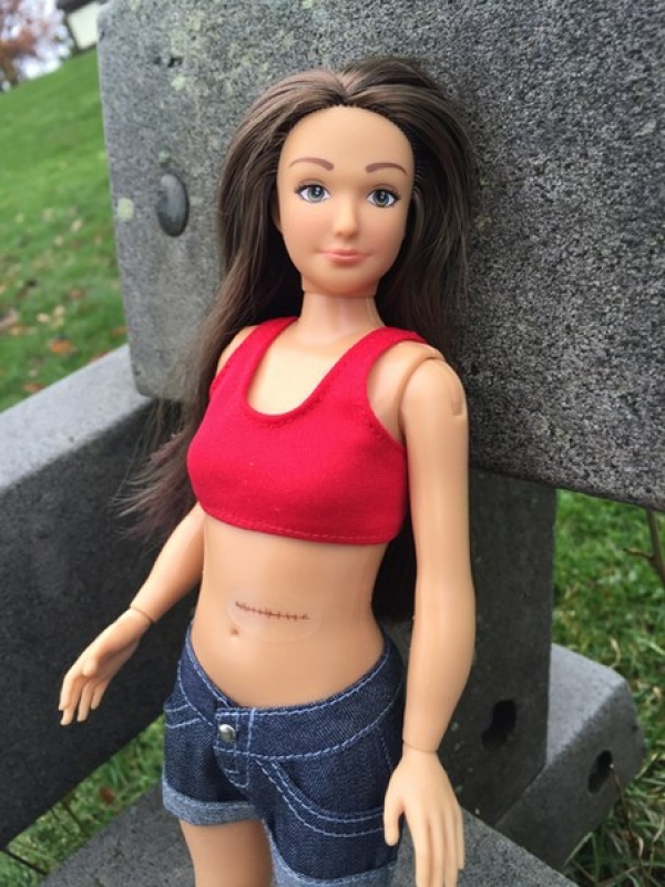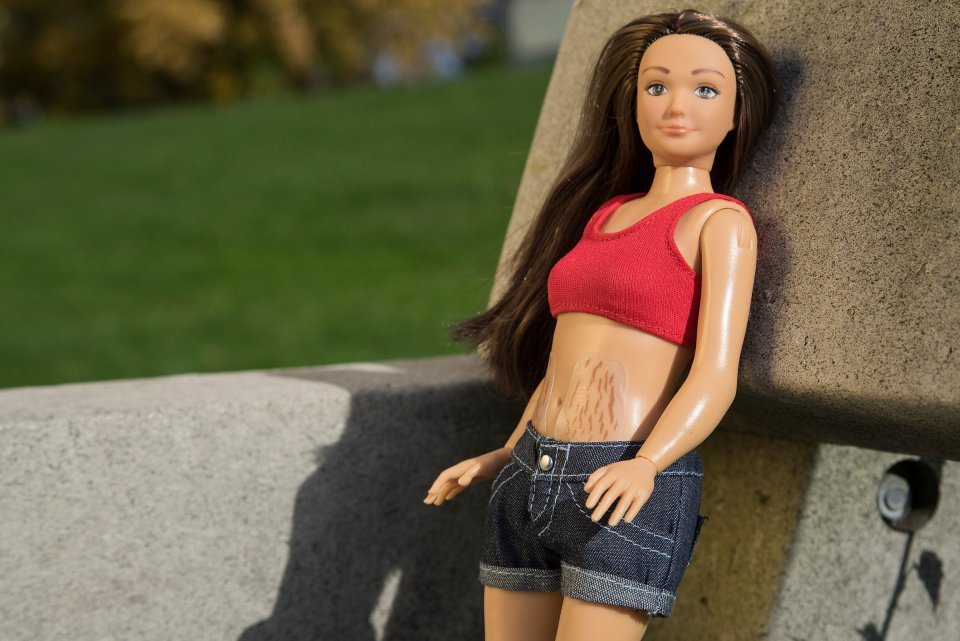 У куклы есть животик, талия широковата. У нее почти полностью нет макияжа, на плоских ногах прорисованы пальчики. Стоит такая куколка почти двадцать пять долларов. К кукле идут в наборе веснушки, царапины, укусы комаров, шрамики и целлюлит. Уже было собрано больше двадцати двух тысяч предварительных заказов.