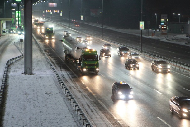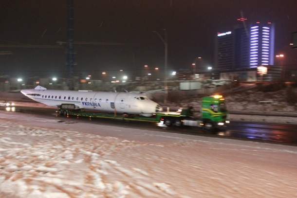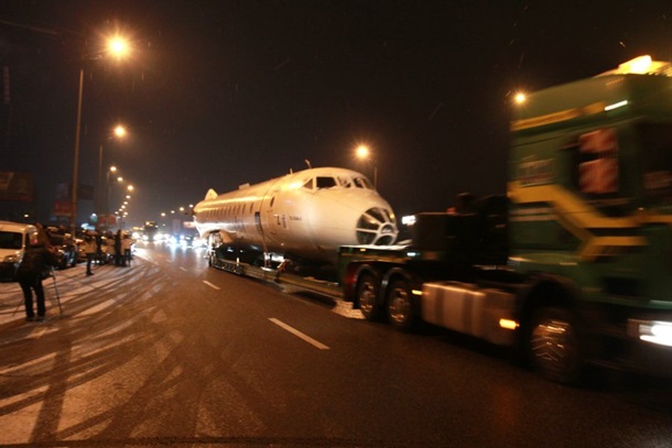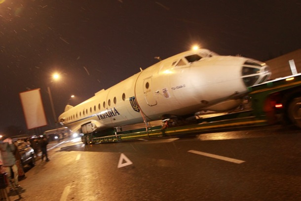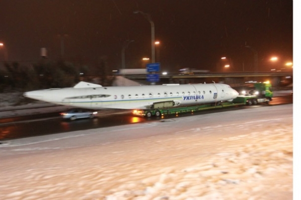 Автомобильная колонна, которая перевозила самолет, стартовала в полночь из Борисполя. Известно, что «президентский» самолет, пятнадцать лет перевозивший руководство страны по миру, теперь будет храниться в Госмузее авиации. Чтобы транспортировать самолет, от него отсоединили киль, двигатели, крылья и шасси. Всего для перевозки ТУ-134 надо было четыре тягача.