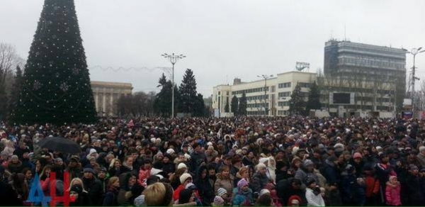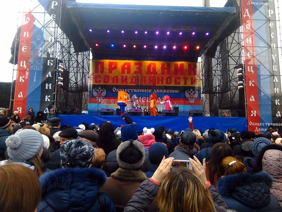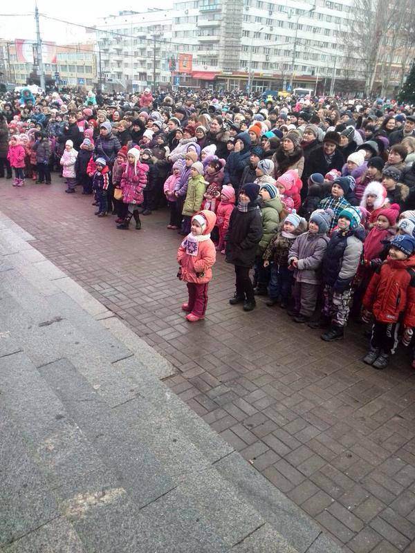 Вчера в Донецке веселились. Сразу десятки автобусов привезли детей из разных районов города на центральную площадь. Где «ДНР» организовала для своих граждан ярмарку и концерт.