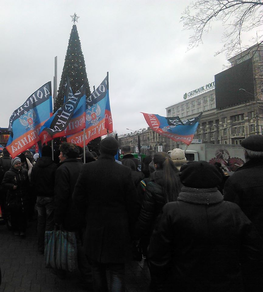 Около полудня на площади собралось множество людей. По примерным оценкам, там было около трех тысяч человек. На бульваре Шевченко представители «республики» движение перекрыли. А между памятниками зачем-то установили пулемет. Учитывая то, что если бы внезапно, начался артобстрел, этот пулемет мало чем бы помог, стоит предположить, что его поставили просто для обозначения собственной силы.