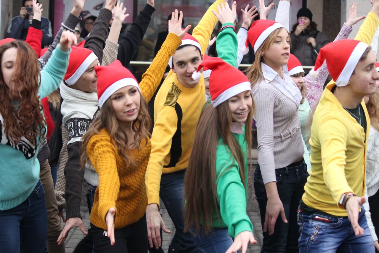 Флешмобы школ №26 и 32 были яркими, массовыми, захватывающими и положительными. С музыкой и новогодней атрибутикой энергично демонстрировали свои выступления представители Долгинцевского, Центрально-Городского и иных городских районов.