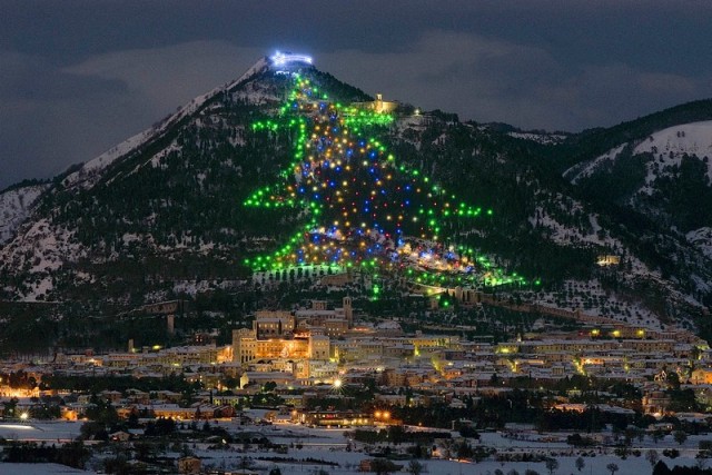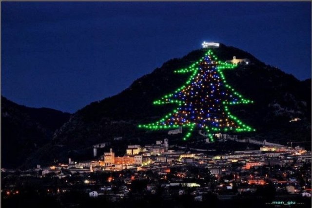 Под Новый год, Рождество во всем мире зажигаются многочисленными фонариками миллиарды ёлок, а самая большая рождественская с 1981 г. зажигается в Италии, на севере страны на склоне горы в окрестностях древнего города Губбио.
