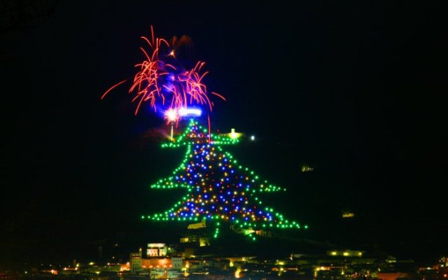 Рождественская ёлка в Губбио – это, правда, не традиционное дерево. Она представляет собой впечатляющую световую инсталляцию. Для этих целей была выбрана гора Инджино. Общая площадь этой ёлки занимает порядка 130 тысяч метров квадратных. Эксперты отмечают, что вкруговую это размеры практически трех футбольных полей. Высота же этой светящейся сотнями разноцветных огней ёлки-инсталляции – свыше 650 метров. Площадь же звезды-кометы на верхушке рождественского дерева в тысячу квадратных метров.