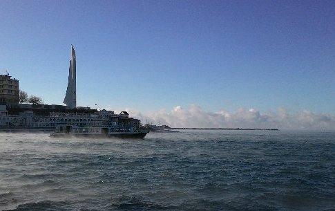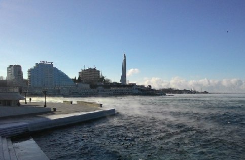 Море в бухте у Севастополя укрылось дымкой. Конечно, в прямом смысле слова море близ Севастополя не дымилось, а точнее оно парило. Такое явление носит вполне природный характер. Парение воды в море вызывается разницей температур у морской воды и воздуха.