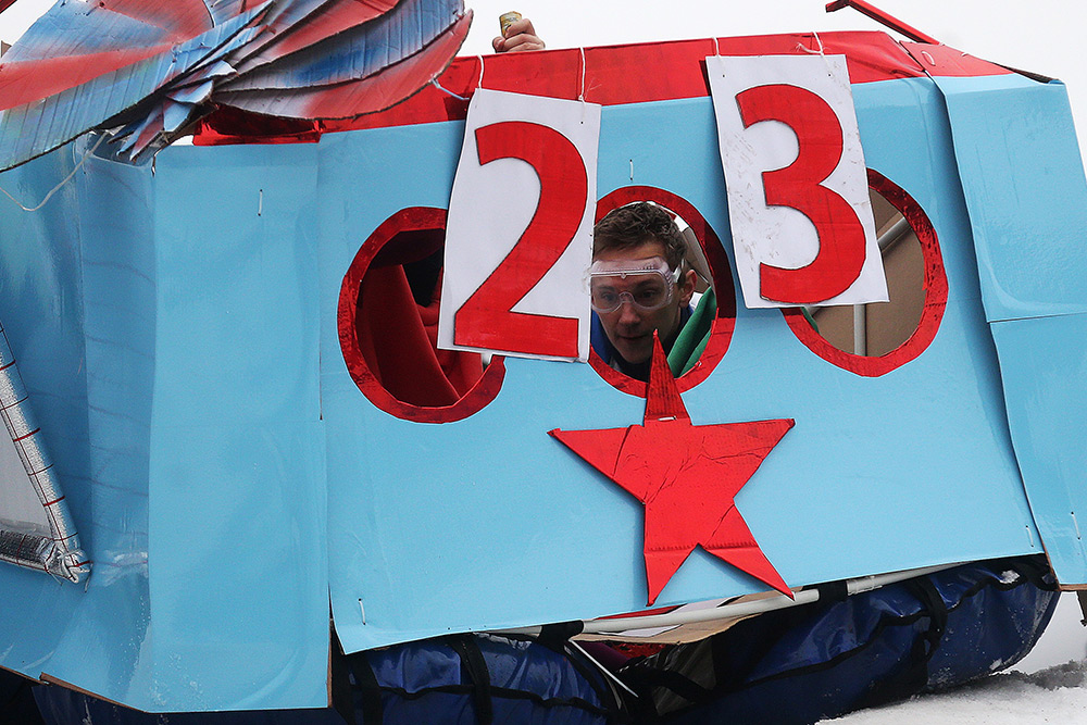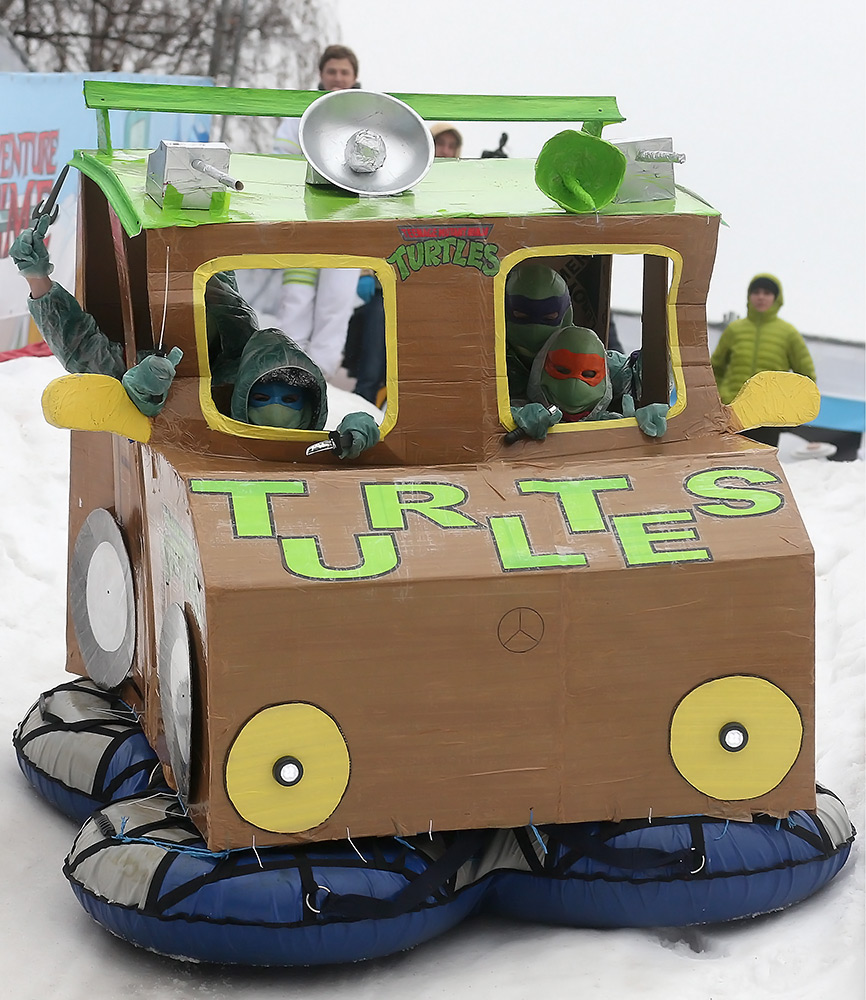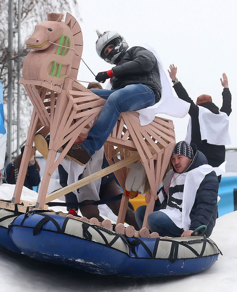 Определяли победителей голосованием. Критерии для отбора – экипировка, костюмы, перформанс накануне спуска, конструкторские идеи и дальность спуска до финиша.