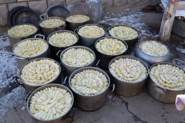 В этот раз хозяйки наварили, налепили, напекли и нажарили аж: пятьдесят восемь ведер с голубцами, сорок четыре ведра налистничков, пятнадцать ведер с шашлыком, восемнадцать ведер капустки с мясом, двенадцать ведер начинки, тридцать девять ящиков буженины, сто пятьдесят килограмм копченой рыбки, триста буханок хлебушка и тысячу булочек.