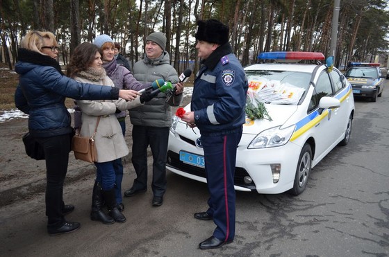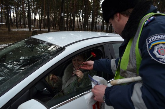 Харьковские сотрудники госавтоинспекции также поздравляли прекрасную половину человечества как раз сегодня. Женщины водители сегодня получали от них не только замечания, как обычно, а цветы, светоотражающие элементы, которые можно прикрепить к одежде, теплые слова, пожелания безопасной дороги и положительные эмоции. И, конечно же, цветы.
