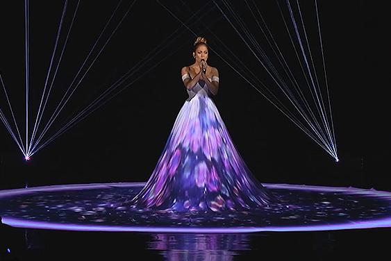Дженнифер Лопес снова поразила всех. На этот раз своим потрясающим платьем. Которое больше было похоже на огромный и функциональный проектор. В красивом и практичном наряде Дженнифер выступала на шоу под названием American Idol.