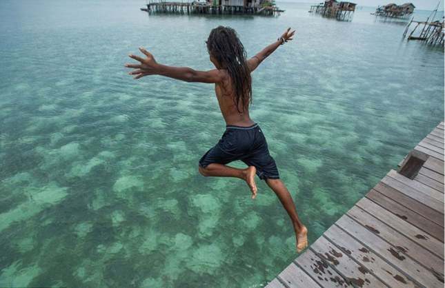Фотограф Рехан на Борнео жил около семи дней. Он общался с представителями кочевого народа баджо, изучал из странную и удивительную жизнь, запечатлевал «детей воды» на снимках. Живут баджо на лодочках либо в домиках на высоких стойках. Они выживают за счет океана, ловко добывая свою пищу. С ранних лет дети могут нырять и плавать, а уже с восьми лет охотятся. Фотограф говорит, что они очень мирный и счастливый народ.