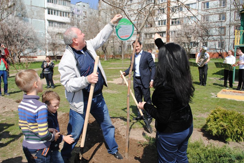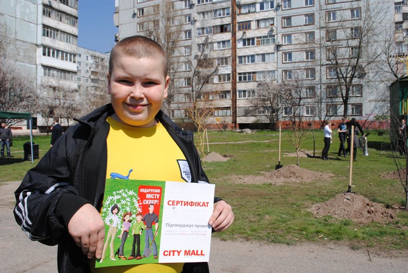 Теперь в самом центре Запорожья зацветут китайский можжевельник и японская слива. На днях семнадцать семей Жовтневого района, победившие в акции от торгово-развлекательного комплекса под названием City Mall, основали новый сквер.