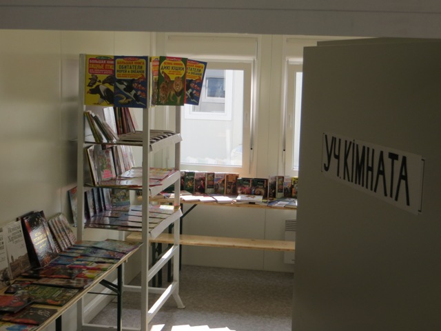 Учебную комнату торжественно народу представили веселые клоуны и аниматоры, которые вместе с артистами на ходулях провели в поселочке небольшой весенний праздник, развлекая местную ребятню. Теперь для малышей в поселке есть сказочки, для детей постарше, справочная и учебная литература, энциклопедии и «развивашки», найдется что-то почитать и для скучающих взрослых – всего собрали книг триста и собираются библиотеку и дальше пополнять. Среди изданий украинская литература и книги зарубежных авторов.