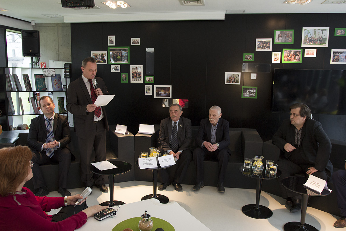 После того, как прошел вернисаж выставки, присутствующие организаторы и гости мероприятия обсудили современную ситуацию, сложившуюся в Украине, экономические и политические события.