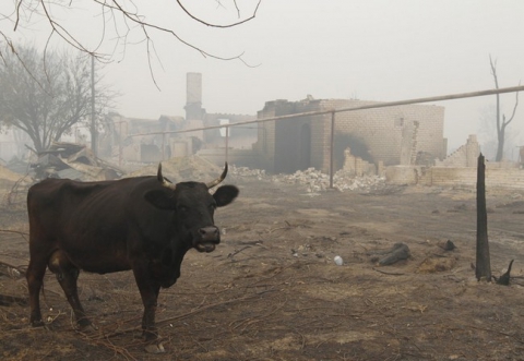 На этих ужасных кадрах вовсе не разрушенный Донбасс. Это Хакасия (РФ) и Забайкальский край, которые уже несколько дней отчаянно взывают о помощи. Этот регион продолжают терзать жестокие пожары. Как всегда, возгорание случилось из-за мелочи. После этого огонь стал «сжирать» дворовые постройки, дома, целые населенные пункты, больше ста четырнадцати тысяч гектаров оказались выжжены, а без крова остались больше чем пять тысяч местных жителей. Официально сообщают пока о тридцати жертвах огня, правда, есть еще и пропавшие... Пожары не утихают, на сегодня в данном регионе продолжают наносить урон еще шестьдесят три возгорания.