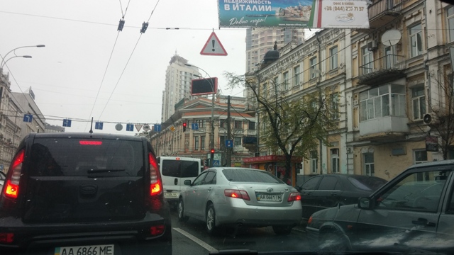На дорогах в столице застряли авто. Их водители поспешили поменять «резину» на летнюю.