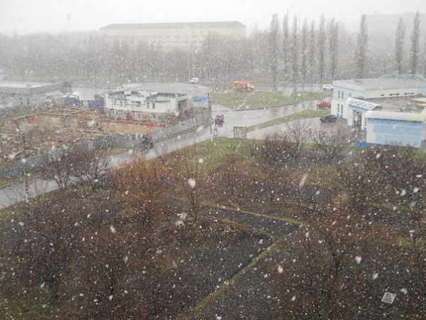 В Украине погода с начала недели не задалась совсем. Вначале дождь, а затем и густой снег накрывает по очереди Львов, Киев, Сумы холодной лавиной.