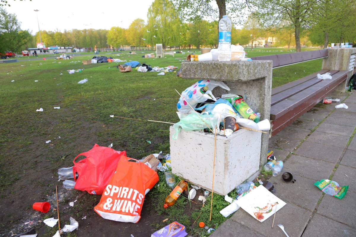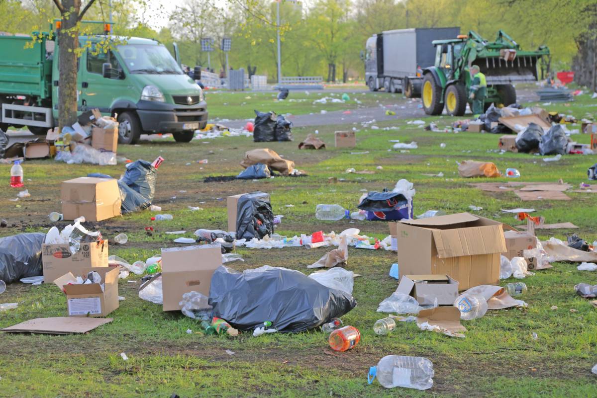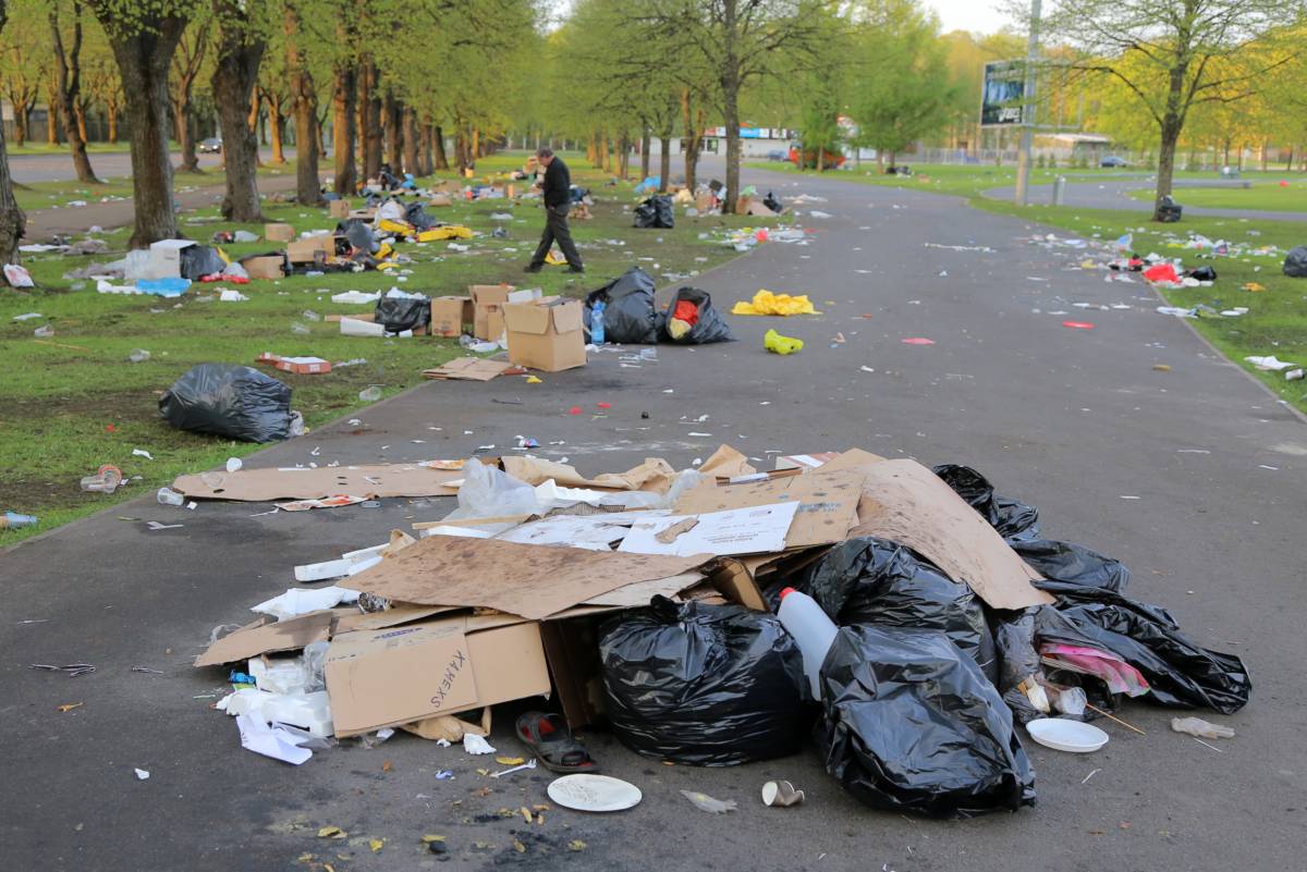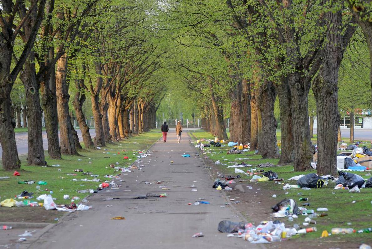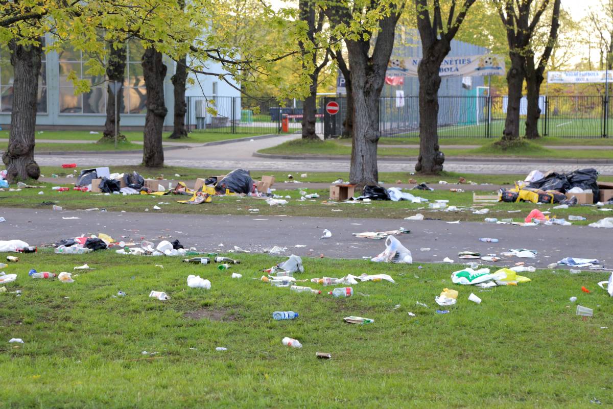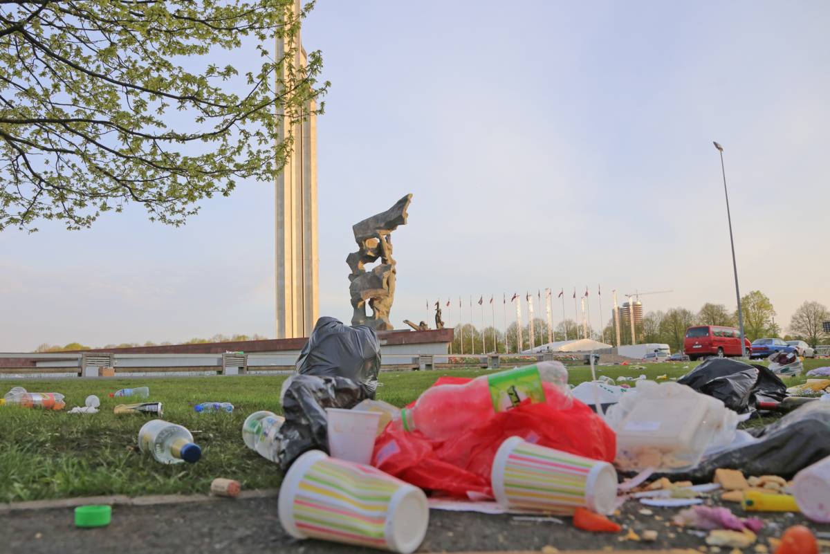 Известно, что алкоголь в Риге на улице употреблять запрещено. Но в этих горах мусорных отходов были пустые бутылки и от спиртного. Так граждане решили масштабно поздравить, прежде всего, любимых себя с праздником. Ну а коммунальщики с утра десятого числа начали разгребать все эти гадкие завалы.