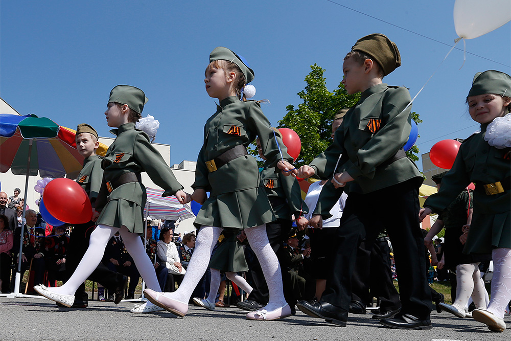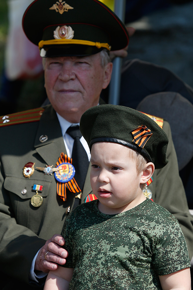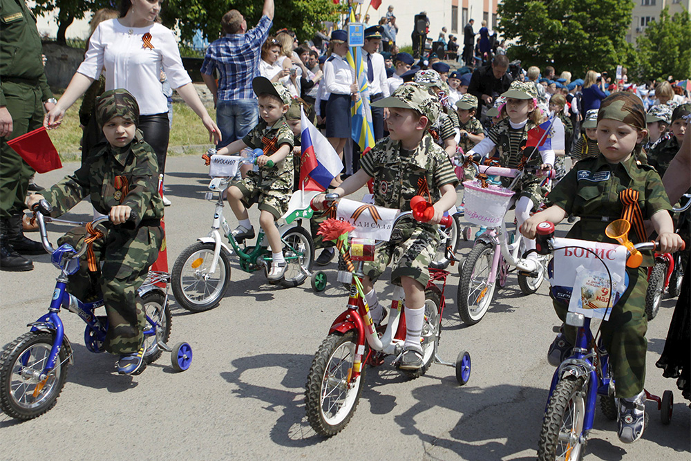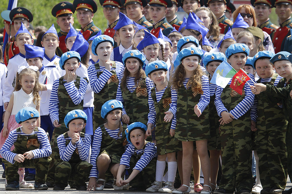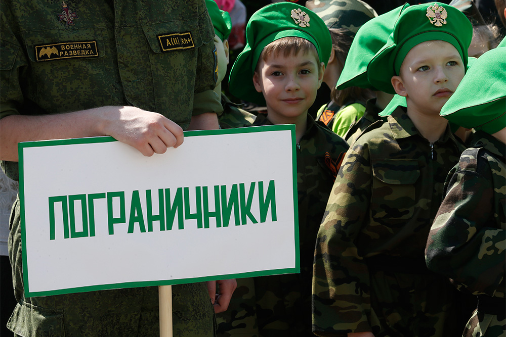 На фото видно, как малыши соблюдали серьезность, вряд ли все осознавали всю «сакральность» мероприятия. Там были десантники, пограничники, пехота ну и прочие виды российских войск. Ребятишек вытянули из-за парт и песочниц, нарядили в военную форму, чтоб взрослые оценили сами себя за масштабный вклад в развитие патриотизма.
