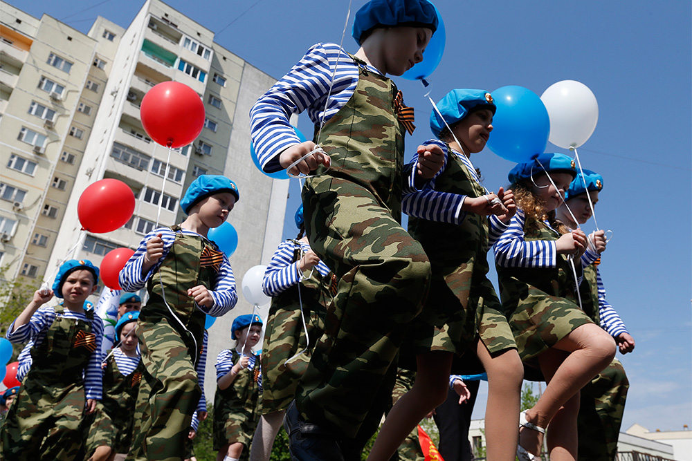 В Ростове вдруг снова маршировали дети. Всего на торжественный мероприятие под названием «парад детских войск» собралось с полтысячи ребят. Причем, возраст участников варьировался лет от четырех до десяти. Все они прошли торжественным маршем мимо местных ветеранов. Оказалось, шествие такое в городе проводят уже шестой год. Известно, что инициатор и организатор мероприятия - Александр Галкин, генерал-полковник, возглавляющий командование войсками Южного округа.