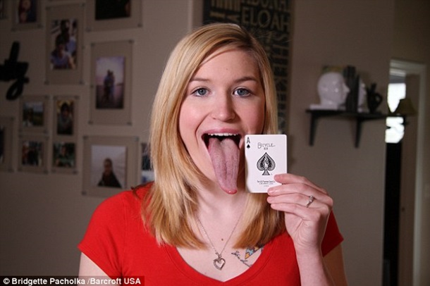 Адриана Льюис из Америки удивила всех своим длиннющим языком. С ним она может делать невероятные вещи. Девушка претендует на собственное место в Книге Гиннеса.