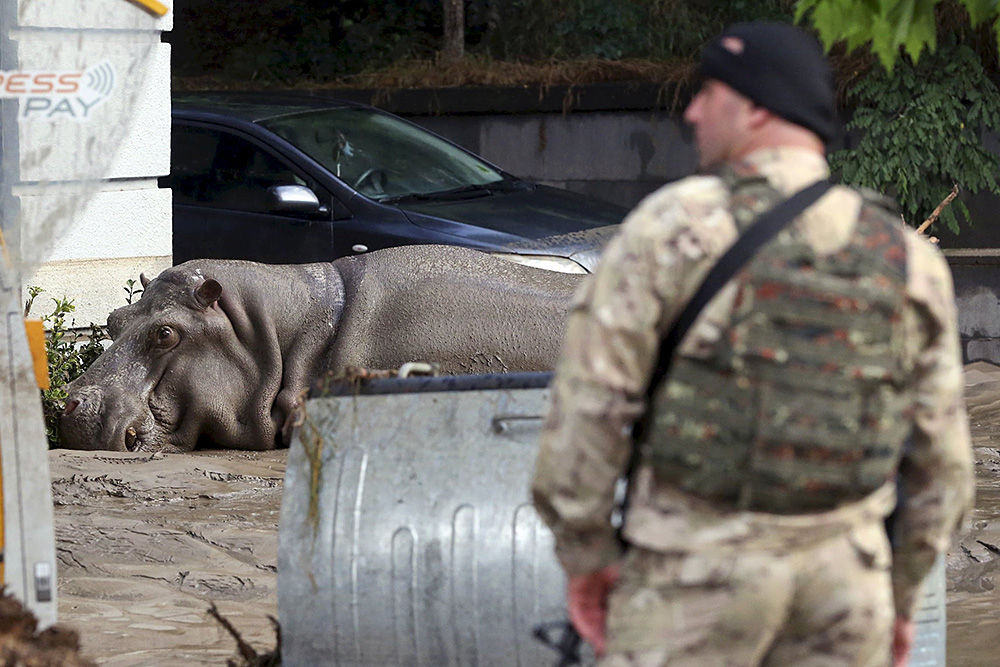 В ночь на сегодня в Тбилиси прошел небывалый ливень. Несколько районов в грузинской столице затоплены были полностью. Размылись дороги, здания получили очень сильные повреждения. По разной информации, скончались около восьми - одиннадцати человек. Также примерно сорок семей лишены крова, двадцать две тысячи – сидят без электричества. А река Вере, которая переполнилась, стремительно затопила зоопарк. Из него перепуганные убежали более тридцати животных. Некоторых из них пришлось убить, в частности, волков, забредших на территорию одного из медучреждений. Остальных разыскивают и пытаются поместить обратно. В них стреляют специальными капсулами, содержащими усыпляющее средство.