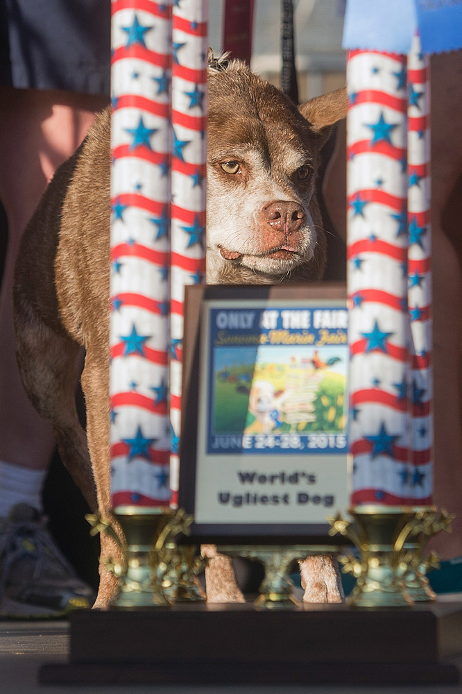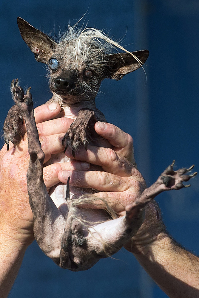 В Петалуме, небольшом калифорнийском городе, состоялось состязание уродливых собак. Мероприятие, как всегда, собрало самых невероятных питомцев. Кривоногие, лысые, смешные, красноглазые, с бородавками, пузатые, ушастые и прочие участники соревновались в собственной неповторимости. В этом году участие принимали всего двадцати питомцев, которые умудрились покорить судей и зрителей своим внешним видом. Известно, что среди основных целей конкурса есть повышение общественной информированности о том, что необходимо спасать зверей. Победитель конкурса уродливых собак получает около полторы тысячи долларов.