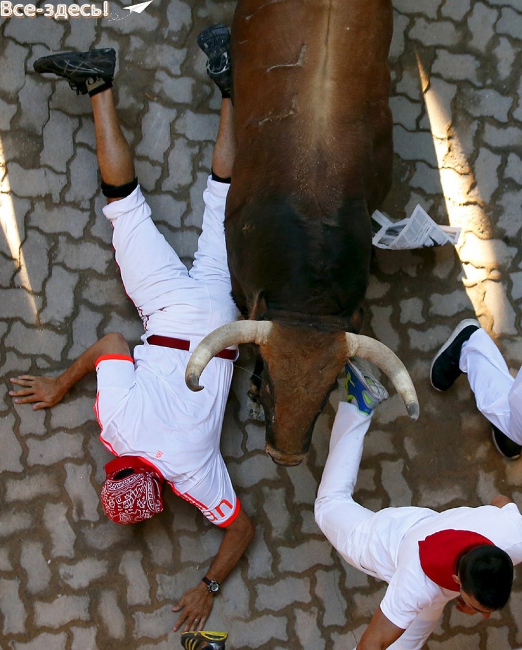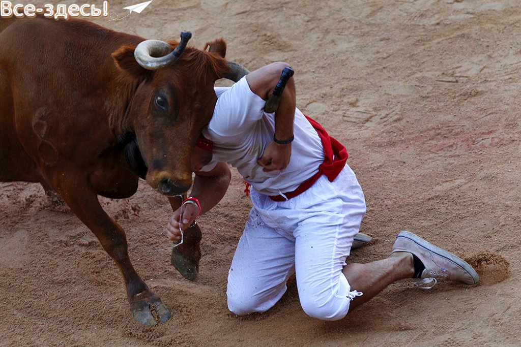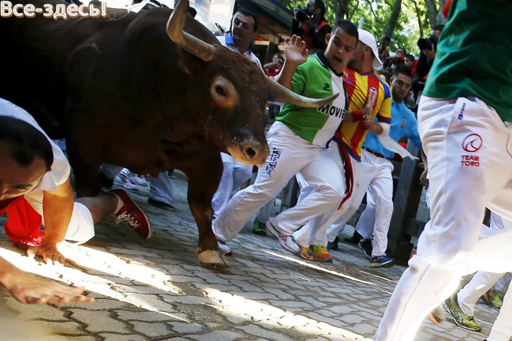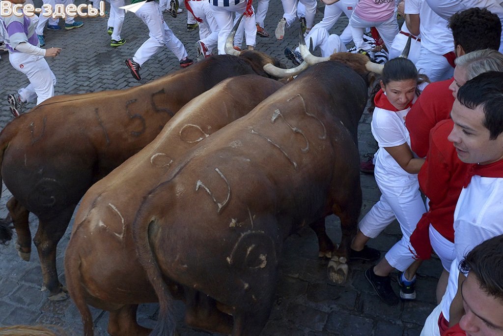В небольшой городок каждый год приезжают ради него тысячи туристов. Праздные зеваки и любители пощекотать себе нервы острыми ощущениями искренне надеются на статую св. Фермина. Который, по приданию, обязан бегунов уберечь от разъяренных быков. К восьми утра дается старт энсьерро – забегу быков. Целая толпа убегает по узеньким улочкам от двенадцати разъяренных животных. У них есть минутки три на то, чтобы преодолеть дистанцию в восемьсот метров. Известно, что сумасшедший забег оканчивается уже после того, как уставшие животные выходят на арену, там вечером проводится коррида. На таких забегах часто случаются травмы, иногда их омрачают даже смертельные случаи. С начала 1911 года уже погибло пятнадцать человек.