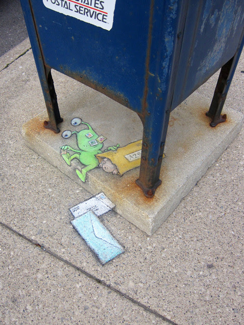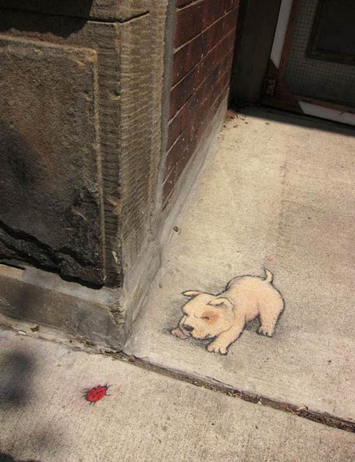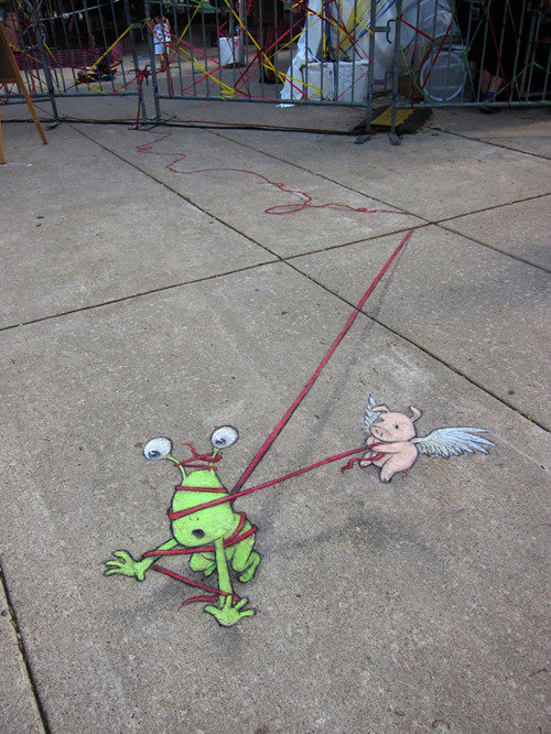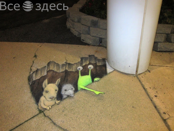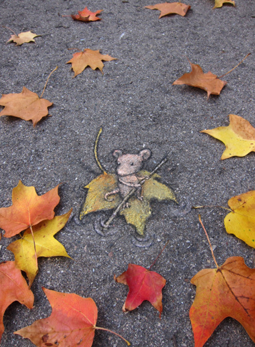Забавная мышиная семейка, какое-то странноватого вида зеленое существо вместе со своим желтым собратом, еще свинки-ангелочки, лисенок и другие существа и зверушки поселились в укромных уголках на улицах Энн-Арбор (Мичиган). Их автор – невероятно талантливый Дэвид Зинн. Он выполняет свои рисунки выполняет в 3-D стиле, благодаря чему смотрятся объемно и очень реалистично. Очень хочется помочь славному мышонку, который путешествует на кленовом листочке, добраться туда, куда он хочет, а еще вместе со свинкой запутать зеленого чудика красной ленточкой, из лужи спасти собаку, которая уцепилась за травинку, почитать интересную книжку, с которой завалился на шезлонг маленький лисенок. Рассматривать эти картинки – сплошное удовольствие, уж очень они милые.