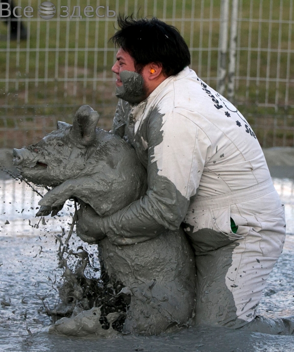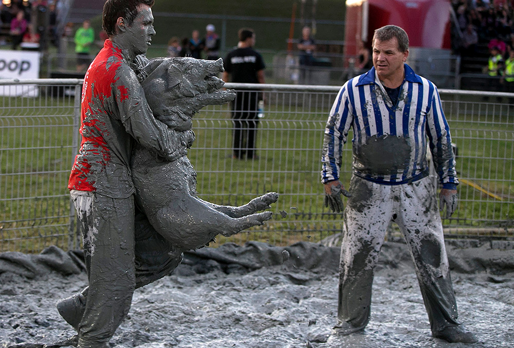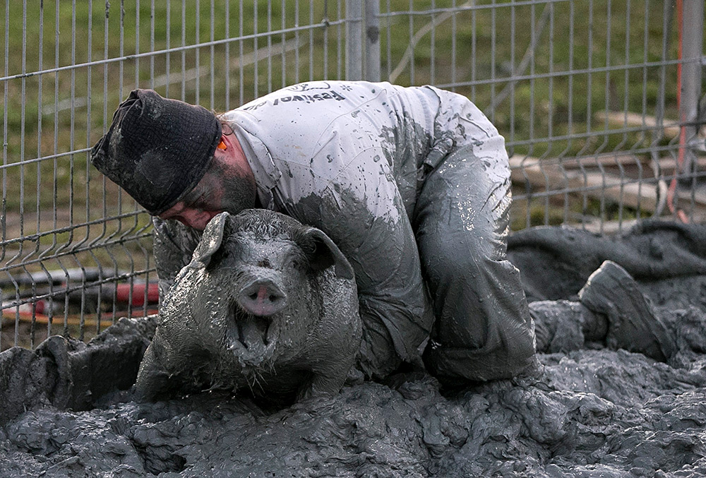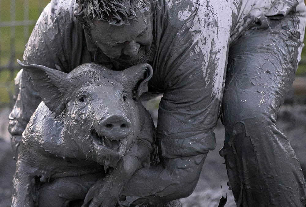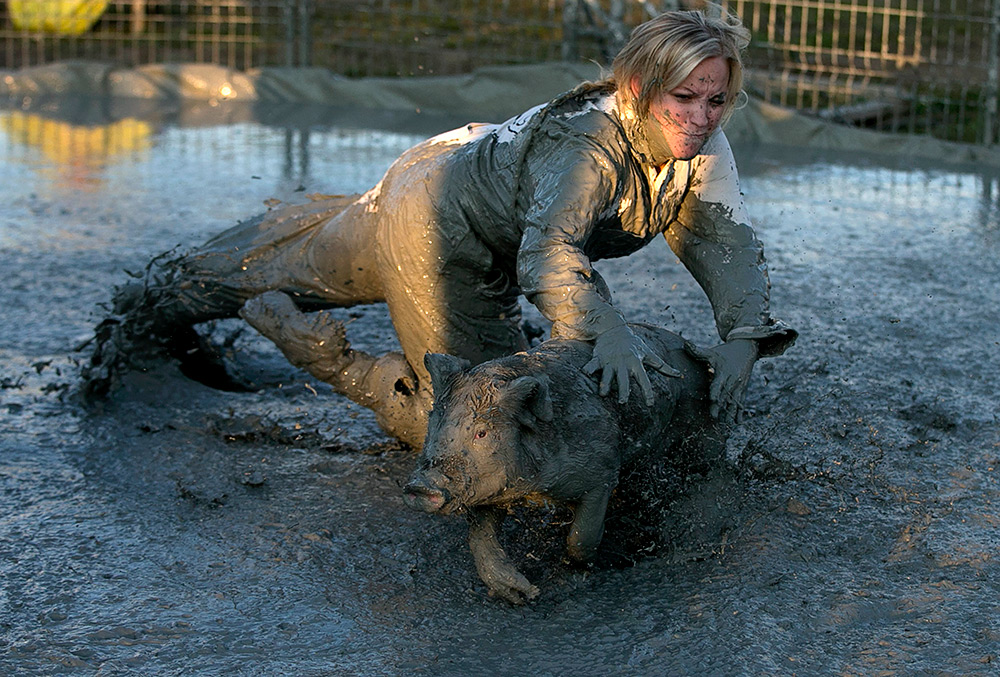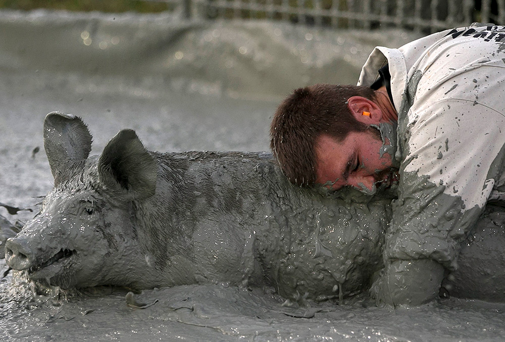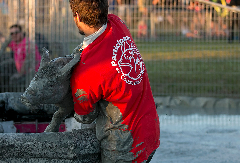 Кульминацией, традиционно уже, стало довольно странное мероприятие – «гонка». Суть соревнования - ухватить в глубокой и грязной луже милую хрюшку, предварительно хорошенько вымазанную жиром, потом участники должны несчастное животное засунуть прямо в бочку. Просто лишь на словах, однако жир смешивается с жидкой грязью. Все это, мягко говоря, участнику доставляет массу неудобств, ну а зрители же наслаждаются положительными эмоциями вперемешку с адреналином . Шоу популярно в Канаде, каждый год посмотреть на него съезжаются около шести тысяч любопытных. Давно его подвергают критике различные организации, которые пытаются защищать животных.