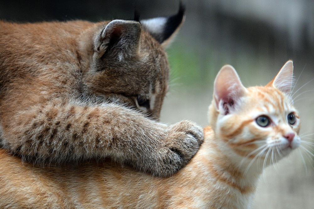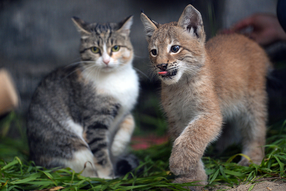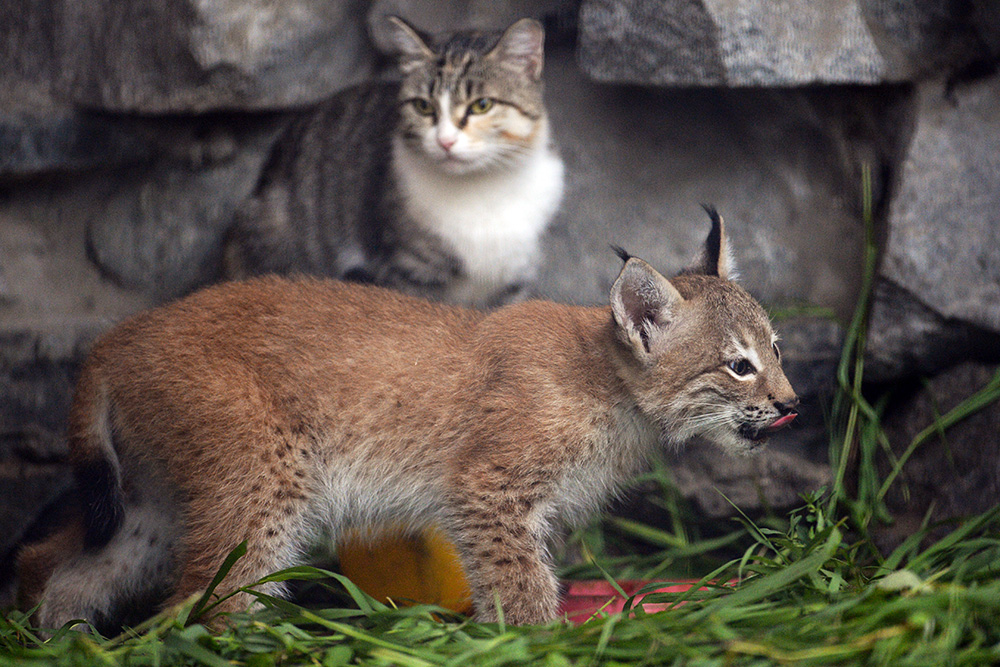 Природа любит удивлять. В зоопарке Новосибирска обычная домашняя кошка умудрилась выкормить рысь.