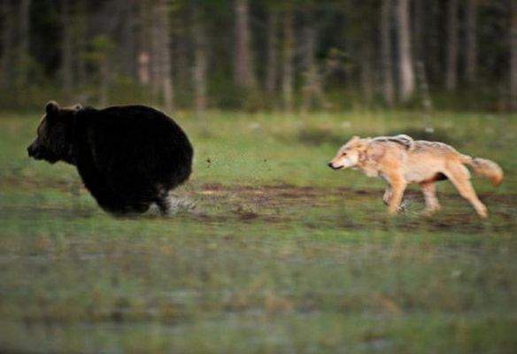 Финскому фотографу по имени Ласси Раутиайнен повезло зафиксировать дружбу мишки-топтыгина и серой волчицы. Их отношения напоминают больше историю из мультфильма, чем на поведение реальных диких зверей, которые, зачастую, не очень-то ладят.