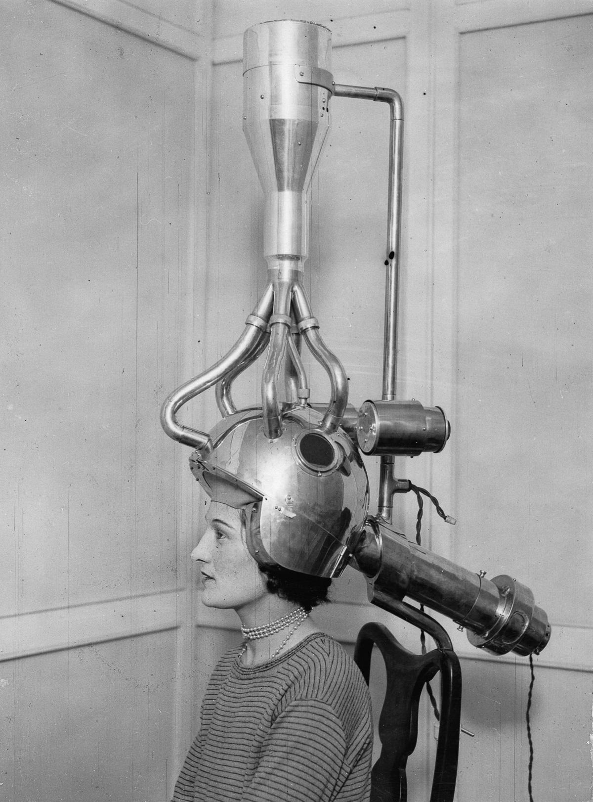 Современным женщинам не понять этот треш. Уже несколько десятилетий у них под рукой всегда есть фен. Но до изобретения незаменимого устройства дамам приходилось пользоваться шлангами, которые крепились к пылесосам, уничтожая практически сразу весь результат мытья головы свежей пылью. В 1890 году Александр Фердинанд Годфруа, стилист из Франции, соединил кресло, колпак и газовую плиту. Получившееся оборудование, больше напоминающее орудие пытки, высушивало волосы довольно быстро. Так клиент был под шлемом, а на волосы дуло горячим. Сушилку начали широко копировать, потом добавили подогреваемые катушки для завивок и подвижные сопла. На портативный фен первый патент выдан был в 1911 году. Салонные фены долго еще были самым лучшим вариантом, вплоть до 1970-х. А затем портативные сушители стали более мощными и безопасными.