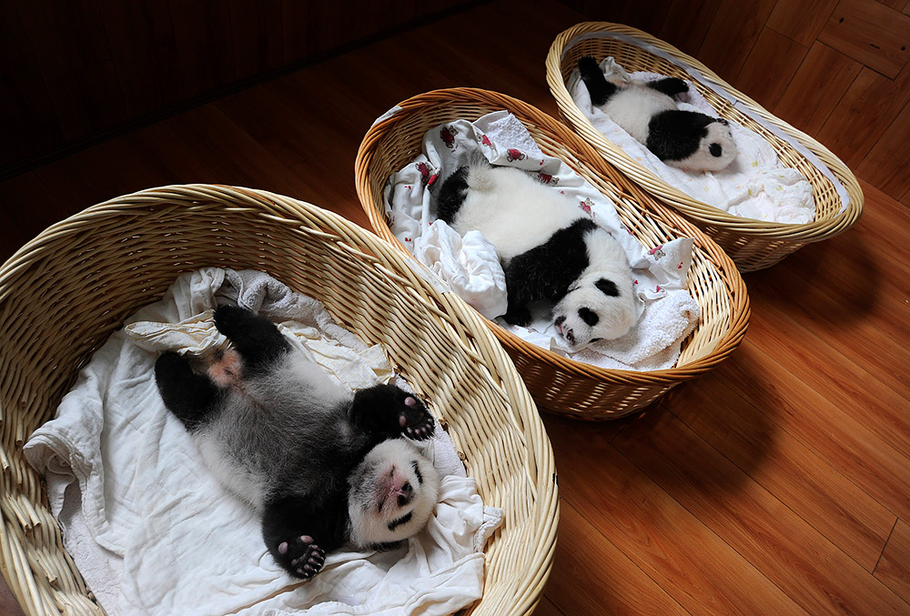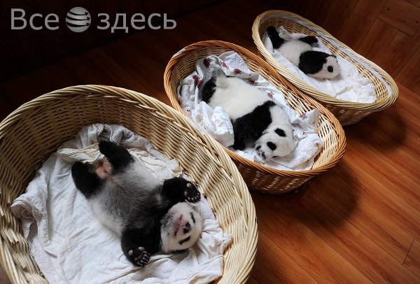 Ученые, которым повезло с работой в Центре, занимающимся разведением уморительных гигантских панд, на днях публике продемонстрировали своих воспитанников. Данный Центр находится в провинции Сычуань. Уже десять потешных и очаровательных малышей родились в этом попали в заботливые руки сотрудников центра. Их возраст – от одной недели до пары месяцев. Малыши пандочки смотрятся невероятно очаровательно. И пусть самые маленькие детеныши слегка лысоваты, а те, которые постарше, сопящие в плетеных корзинках, укрытые милыми одеяльцами, смотрятся ну просто умилительно. К слову, журналистам повезло – их даже пропустили прямо в лаборатории учреждения. Обычной публике пришлось разглядывать очаровашек только через окошко.
