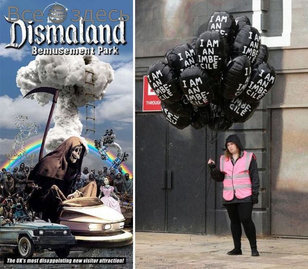 Бэнкси, известный художник, недавно в Великобритании открыл свою собственную версию Диснейленда. Вот только это нечто совсем противоположное позитивному и радушному парку, известному по всему миру. Это место абсолютно для детей не пригодно. Dismaland больше напоминает жуткие декорации, которые художники придумали к фильму ужасов. К слову, оформлять Dismaland привлекали неизвестных уличных художников, которые с удовольствием в жизнь воплощали свои наиболее интересные идеи.