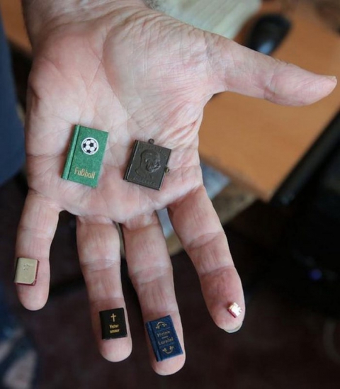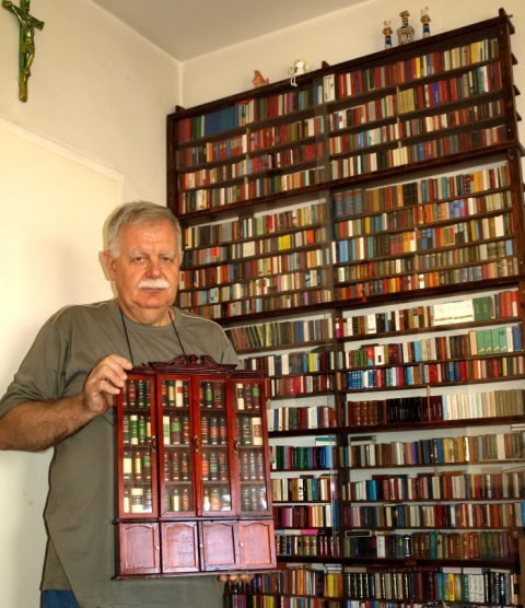 Житель Венгрии, с интересным именем Йожеф Тари, смог собрать удивительную коллекцию. Ведь по праву он может похвастаться самой малюсенькой библиотекой. В его коллекцию всего входит сейчас больше четырех с половиной тысяч миниатюрных экземпляров. Интересно, что наибольший книжный том длиной не больше всего семи сантиметров – это главное условие.