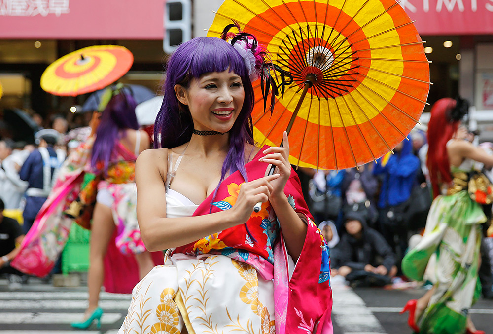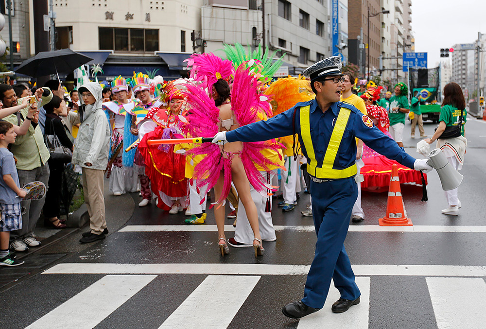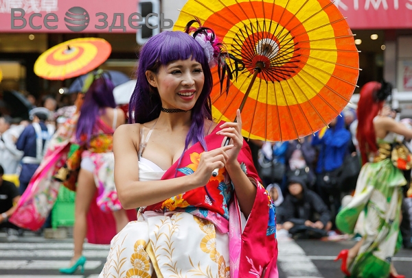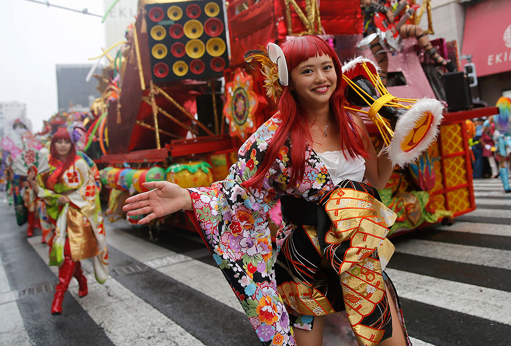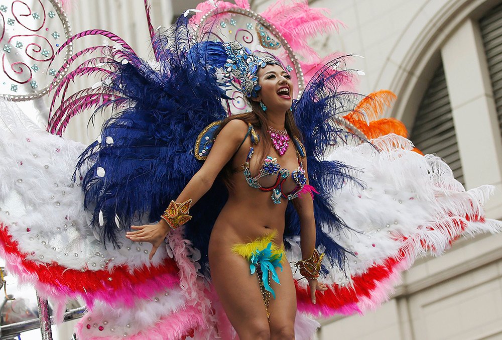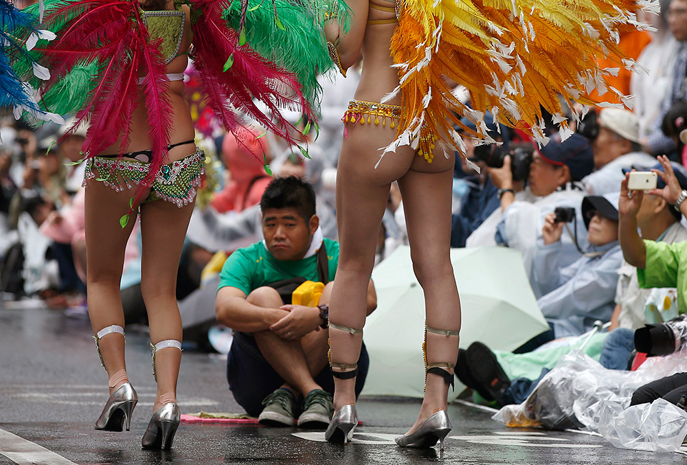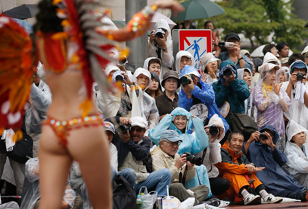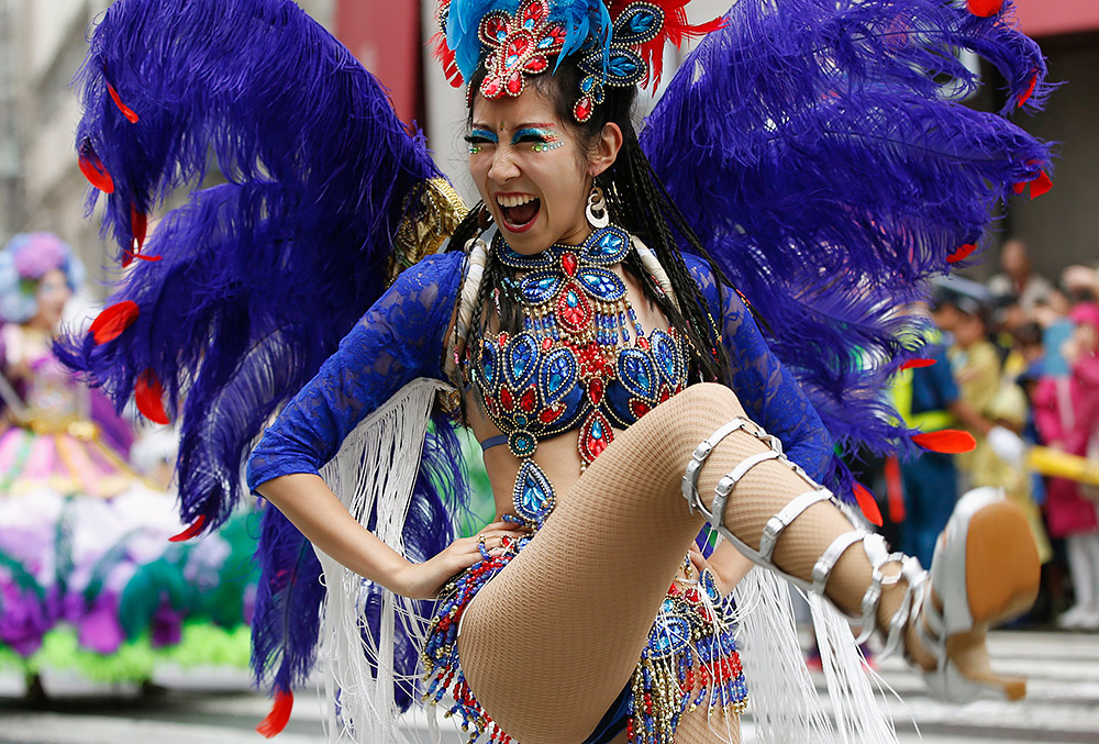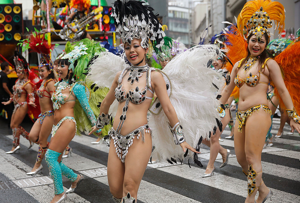 В Токио красавицы собрались на тридцать четвертом фестивале Аsakusa Samba Carnival. Он каждый год собирает тысячи танцоров самбы, а еще музыкантов в самых экстравагантных костюмах. Вместе они вышли на улицы прямо в центре японской столицы, чтоб хоть на пару дней ее преобразить, превращая в нереально шумный и радостный почти-Рио-де-Жанейро. И хоть немного подкачала погода, и некоторые участницы продрогли немного в своих перьях, а журналисты вместе с прохожими, как следует укутанные от капель дождя, с каким-то недоумением смотрят на раскованнее улыбки красавиц, праздник удался! Все ярко, шумно и великолепно. Вполне в духе шикарного Рио!