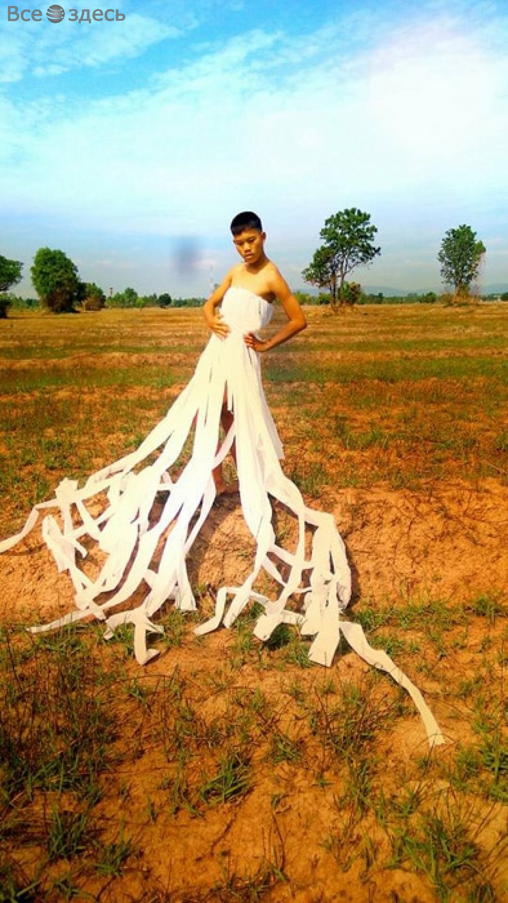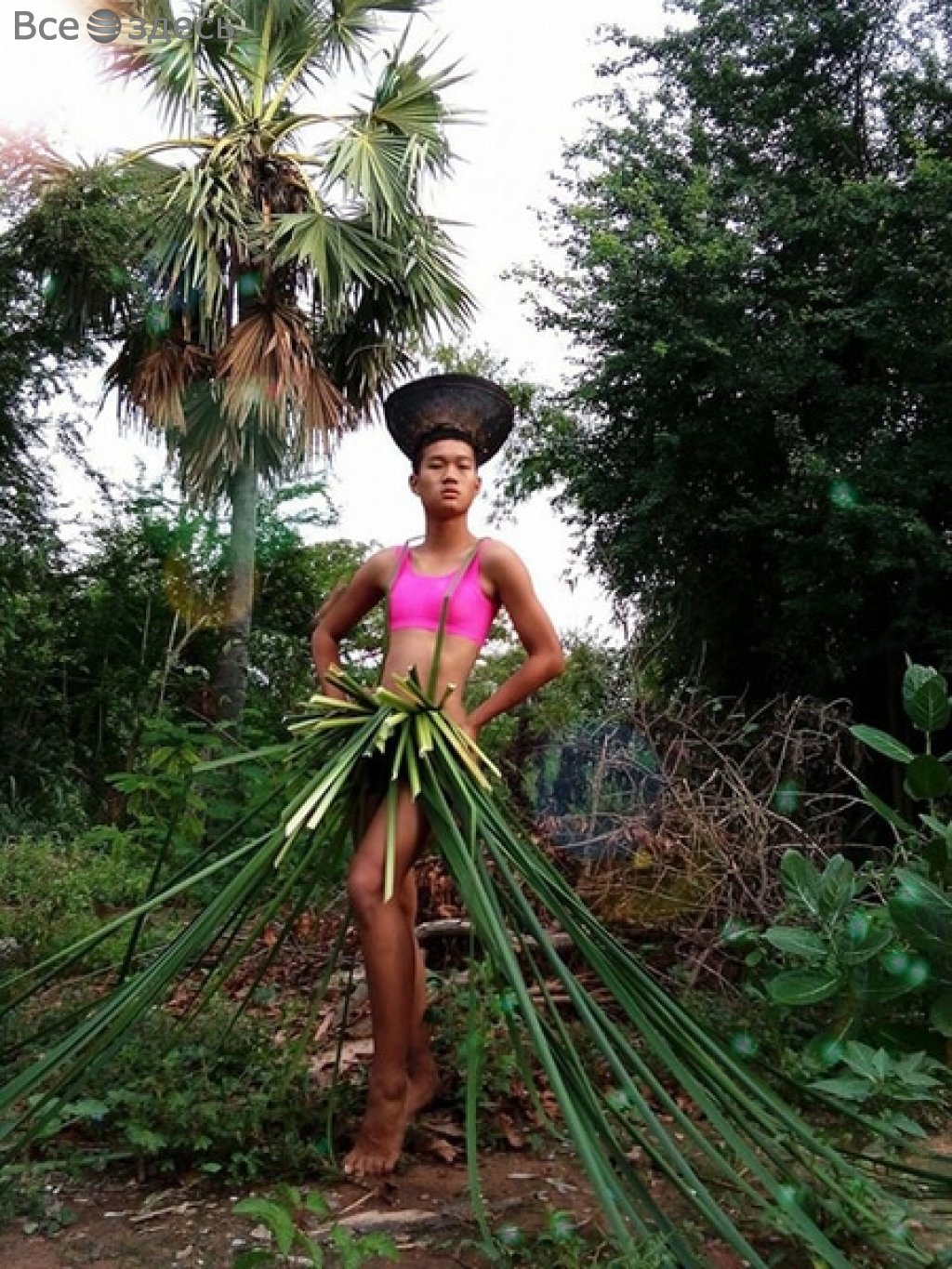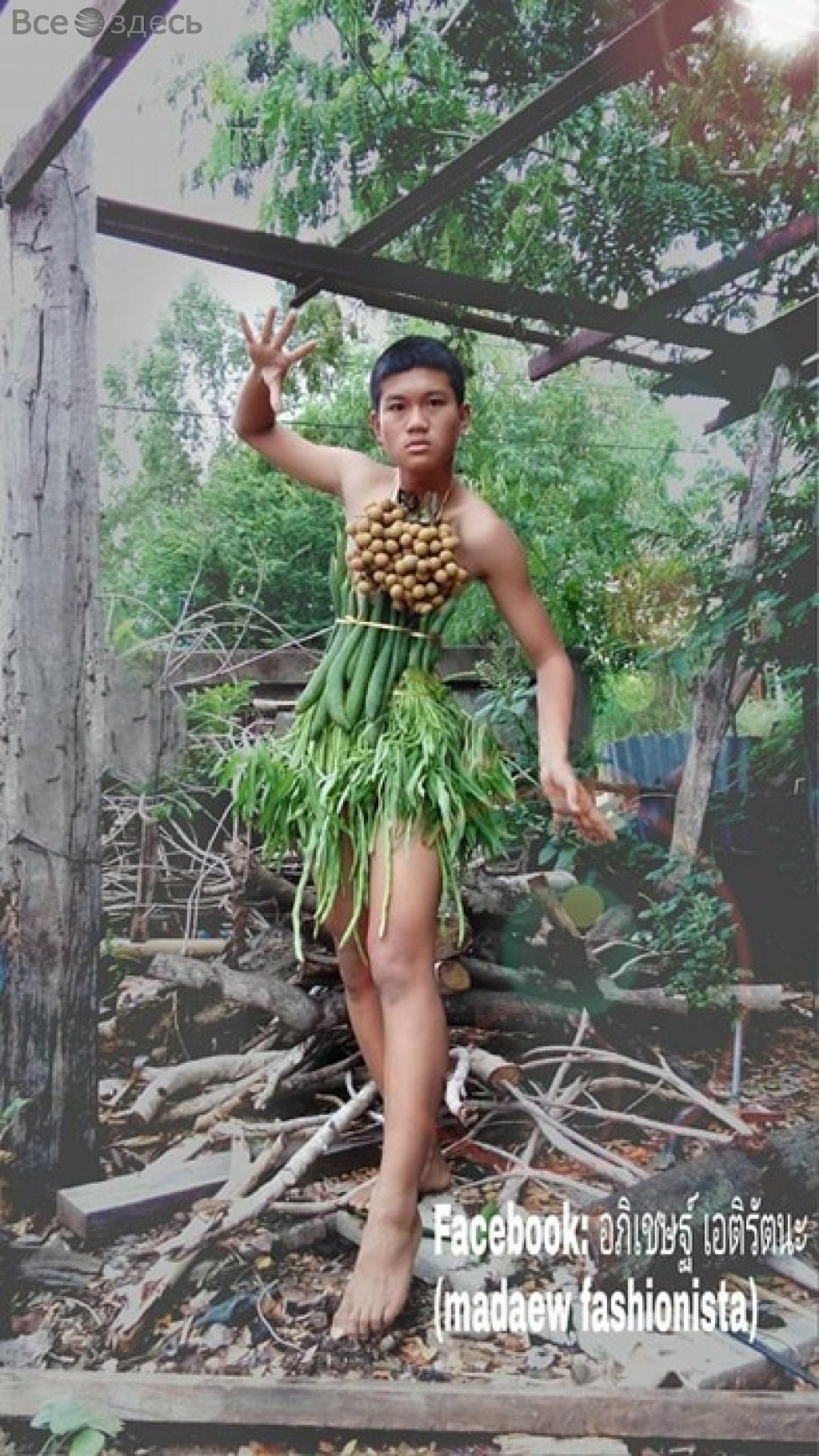 Его зовут Мадо, родом парень из Кхонкэна. Он себя называет «тайским модельером». Наряды он создает из каких-то предметов, которые рядом есть в этот момент. Идет в ход все: плетеные корзинки, соломенные пучки, воздушные шарики, старые игрушки и трава. Складывается впечатление, Мадо способен превратить любую мелочь изысканную вещицу.