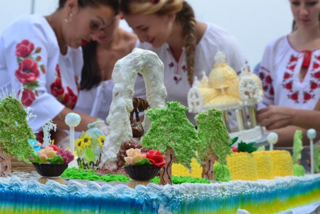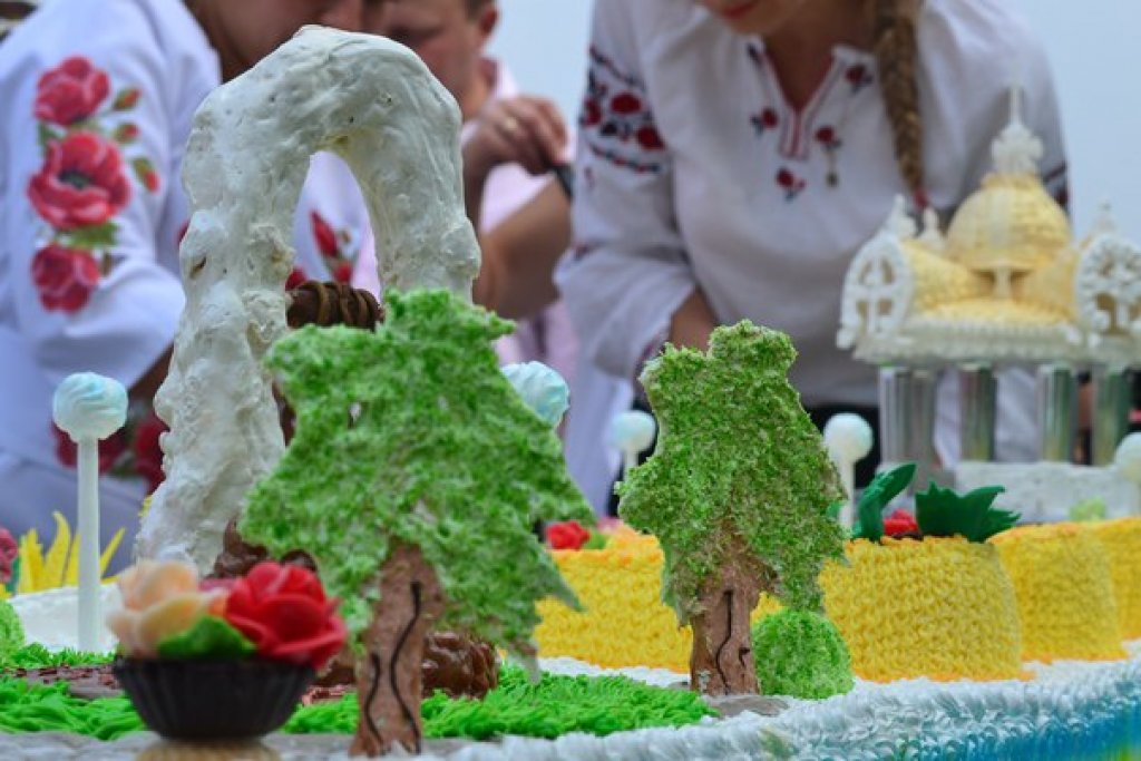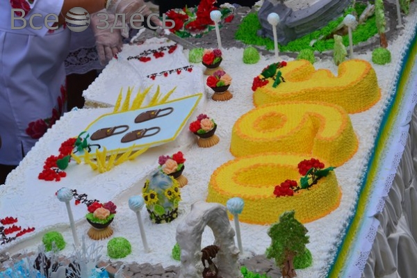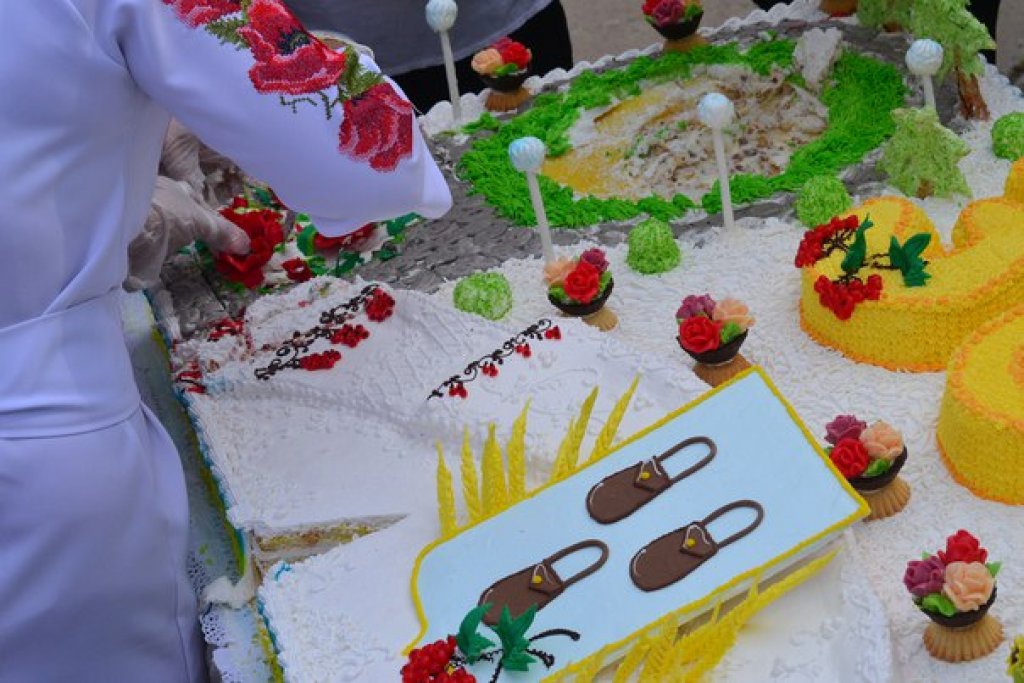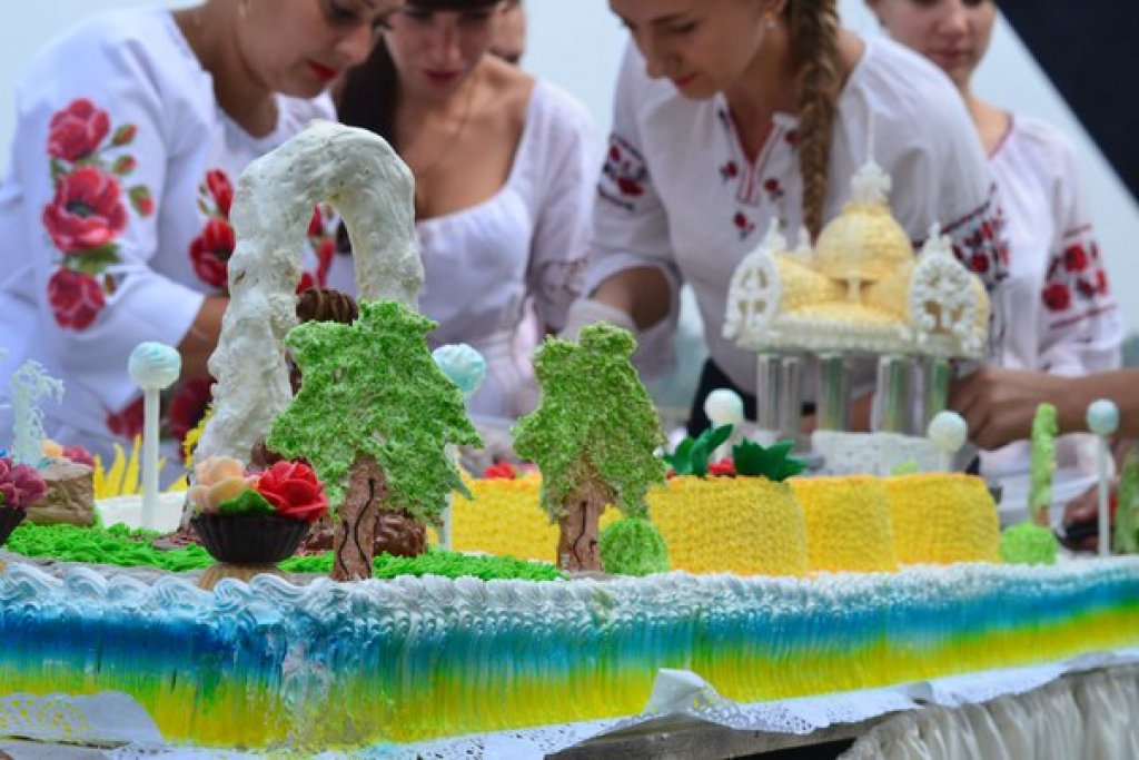 А еще сумчане сегодня съели свой город. Получилось это быстро, организовано и культурно. Без давки, лопат и активного дележа. Прекрасный пятидесятикилограммовый торт, который с любовью испекли для сумчан кондитеры предприятия «Сумська поляниця», представлял собой ключевые символы города.