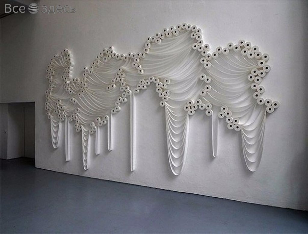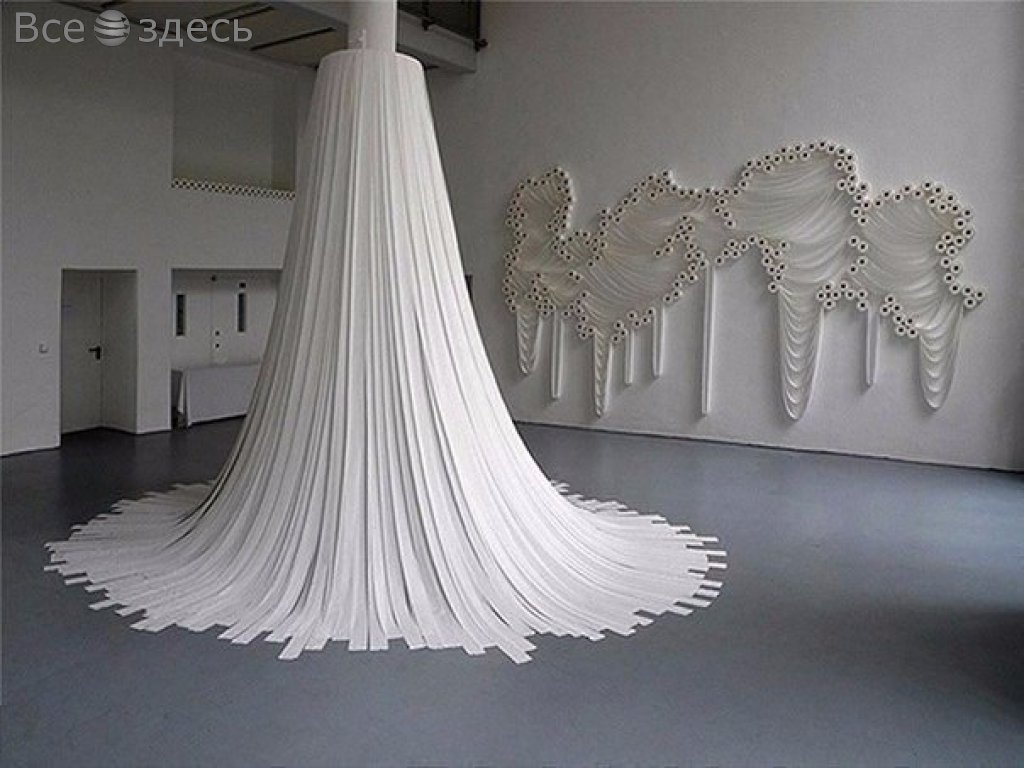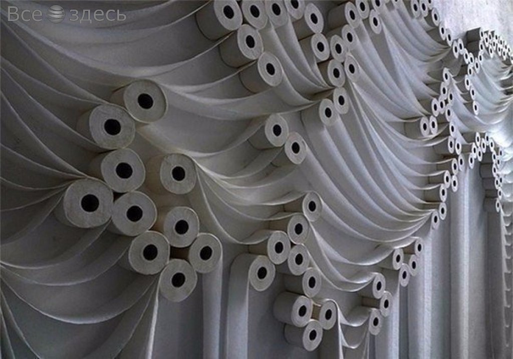 Кто-то решил, что туалетная бумага будет полезна только в месте ее непосредственного назначения? А вот нет. Используя этот бесхитростный предмет, можно творить совершенно невероятные вещи. Это не просто поделочки из картонных валиков. Это настоящие картины, инсталляции, произведения искусства. Ведь если рулоны с тонкой бумагой расположить правильным способом, а также размотать должным образом, получается что-то удивительное. Колонны, фигуры, нечто, похожее или на широкие улыбки, или на елку – и все это из белой бумаги. Новый способ творчества выбирают все больше последователей, которые выкладывают работ из бумаги в интернет. Ну а теперь представьте, какая красота получится, если использовать разноцветную?