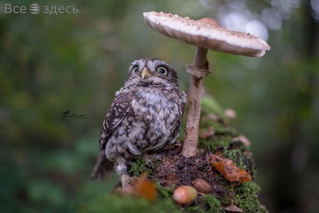 Совушки – вот последний модный тренд, который приводит в умиление всех интернет-пользователей наравне с котятами и енотами. Хозяйка Польди – Таня Брандт занимается профессионально фотографией. Она очень любит использовать в качестве модели свою любимицу – полуторагодовалую сову. В дружной семье Тани есть еще собака, другие птицы, поэтому фотоаппарат ей просто необходим. Очаровательная история, в которой Польди спряталась под гриб от дождя, уже стала известной многим и быстро распространяется по сети. Фото с собакой, а также совместный портрет с хозяйкой в солнечных лучах также очаровательны.