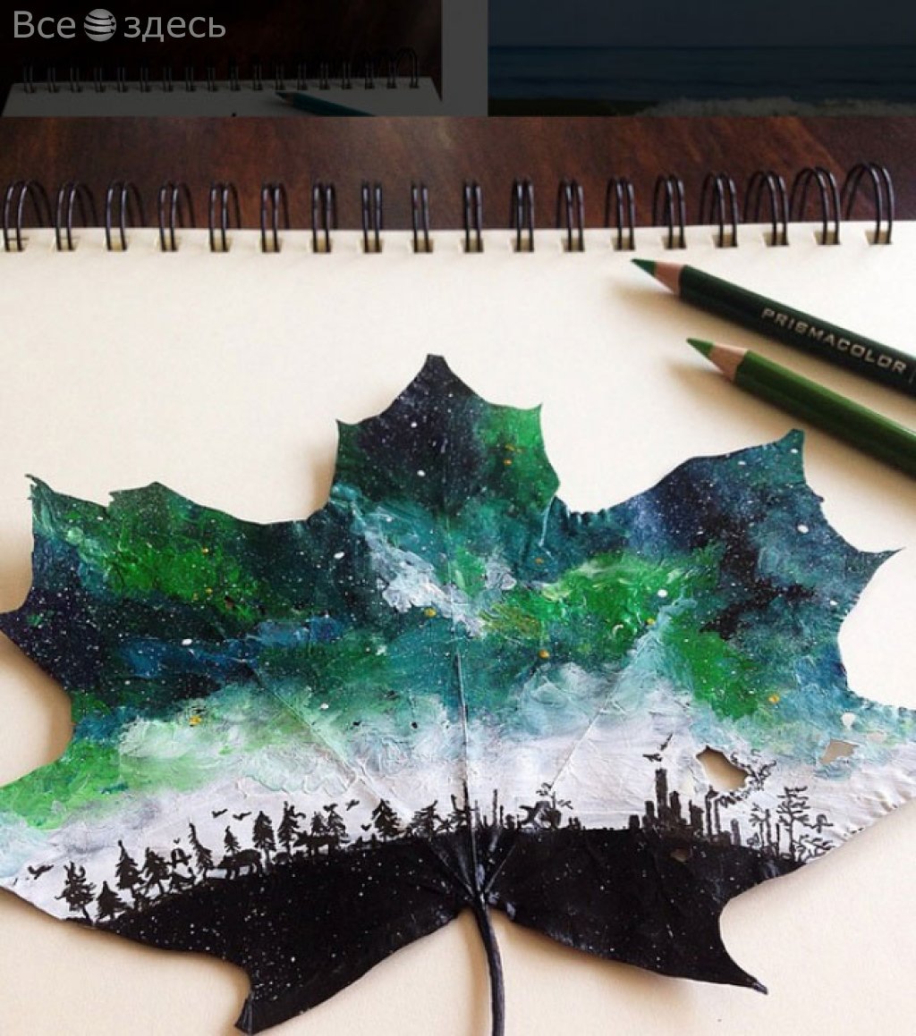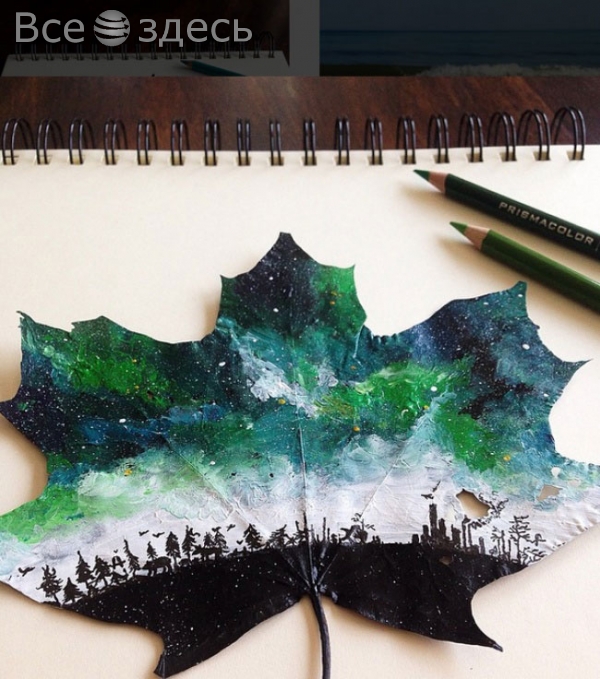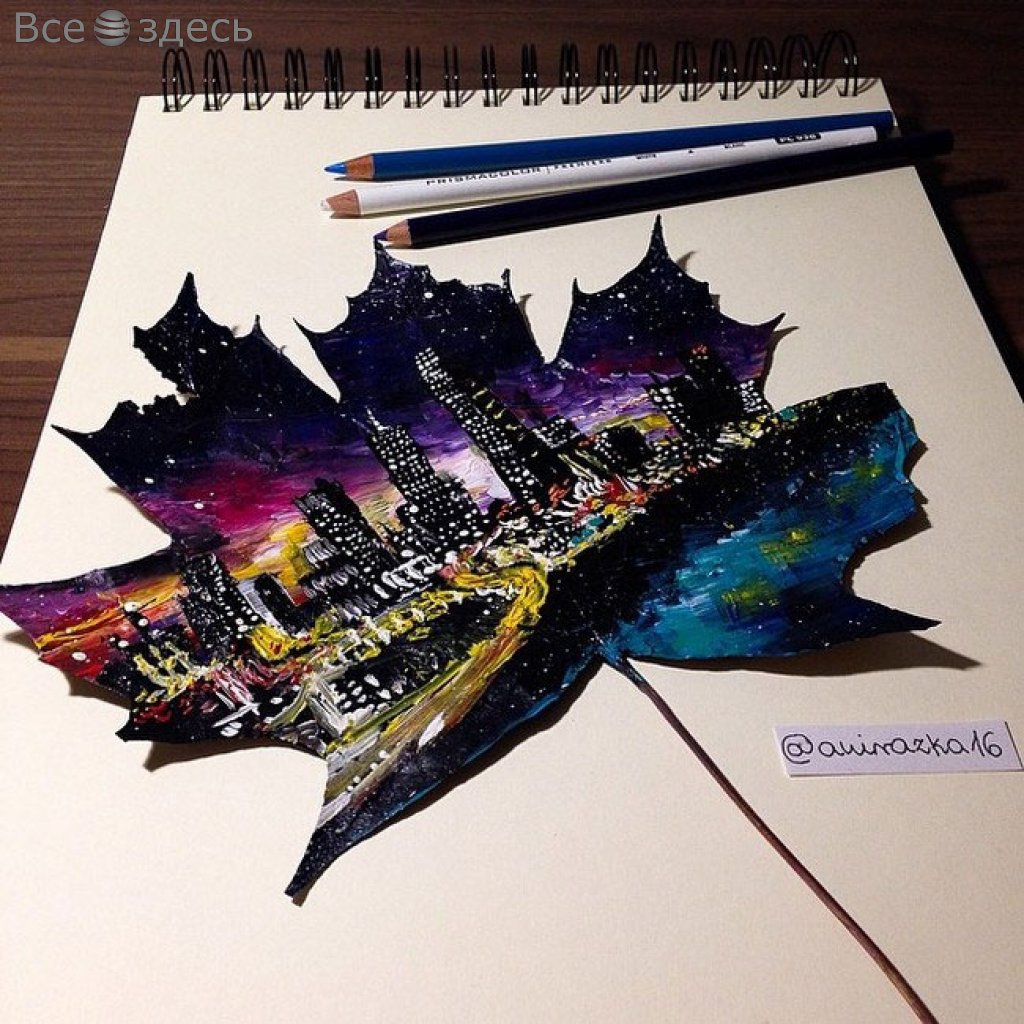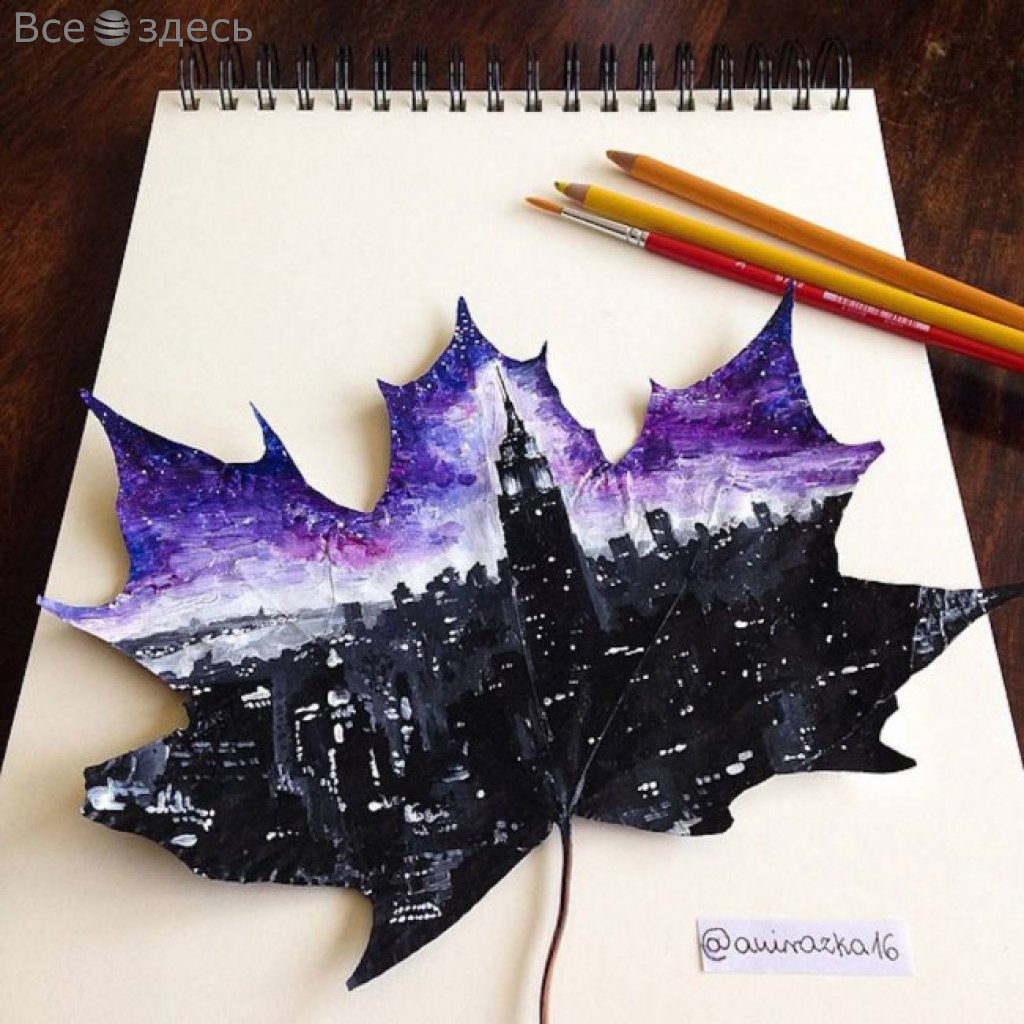 Ионна Виражка – художница из Польши. Она нашла весьма необычное применение весьма обычным осенним листьям. С помощью акриловых красок, а также цветных карандашей она превращает их в глубокое звездное небо или же прекрасные пейзажи. Всего на одну такую кропотливую работу у Виражки уходит около трех часов. Когда она рисует, то надеется, что проект поможет людям найти вдохновение во всем абсолютно. Не исключение - опавшие листья, которые осенью многих расстраивают своим увяданьем. Осень – это красиво, особенно, когда она тихая и звездная, - говорит она. Так это или нет, судим из подборки фотографий.