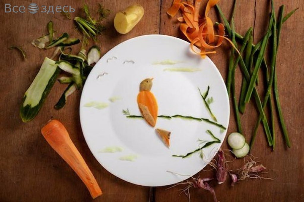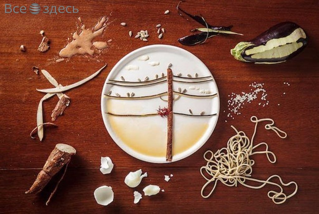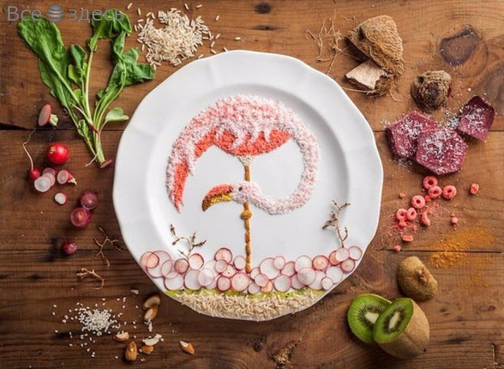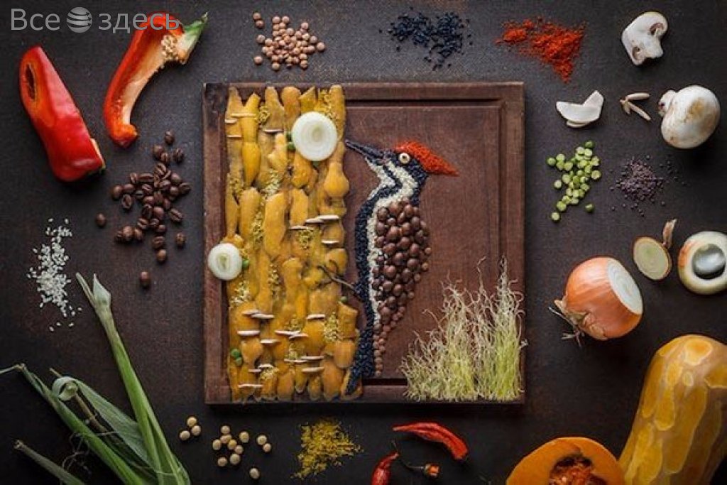 Несмотря на внешнюю съедобность, картины, которые создает на тарелках испанская фуд-художница по имени Anna Keville Joyce, скушать не удастся. Известно, что основная задача заключена в создании аппетитной и креативной фотографии готовых блюд, которые потом размещаются в кулинарных книгах. Однако, иногда, истинно по велению капризного сердца, она решает отступить от надоевшей рутины, вот тогда получаются настоящие шедевры. Материалом служит, к примеру, кожура от фруктов, скорлупа обычных яиц, ну и разные крупы. Художница не скрывает, свои картины она окружает как раз тем, из чего они состоят. К примеру, создана была серия работ на тему милых птичек. Так Анна ностальгировала о своем попугайчике по имени Баджи. И создала рисового фламинго, кофейного дятла, а также волнистого попугайчика, которого удалось сделать из картофеля и моркови. Но композиции существует недолго. Ведь наиболее выразительные компоненты, из которых создаются картины – яичные желтки, семечки подсолнечника и части фруктов с овощами.